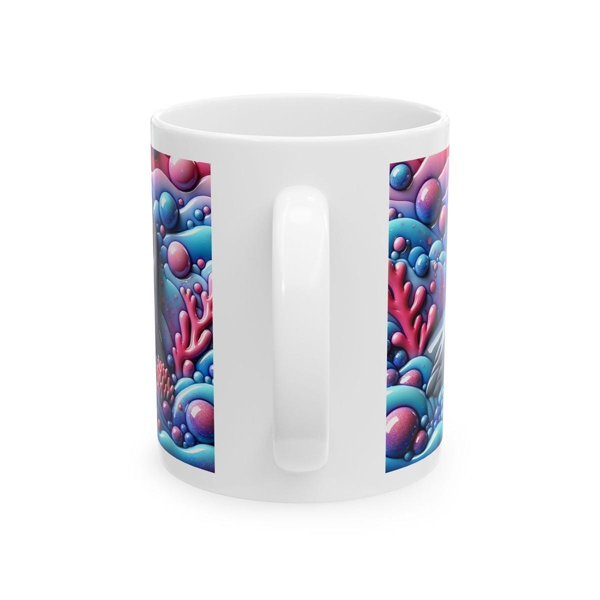 The design of the mug is inspired by the ocean, with a beautiful underwater scene that will transport you to a tropical paradise. The colors are vibrant and eye-catching, making it a great addition to any kitchen or office. The mug is perfect for coffee, tea, or any other hot beverage you prefer.