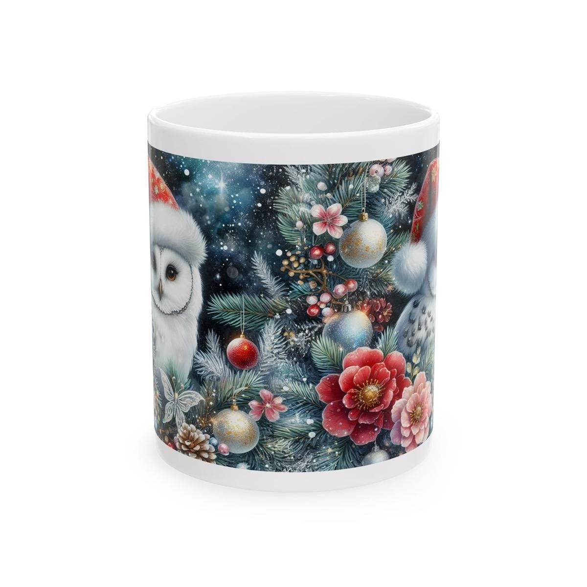 Overall, this white owl Christmas mug is a must-have for anyone who loves the holiday season. Its cute design and festive touch make it the perfect addition to your holiday decor, while its practicality and comfort make it a great choice for any occasion.