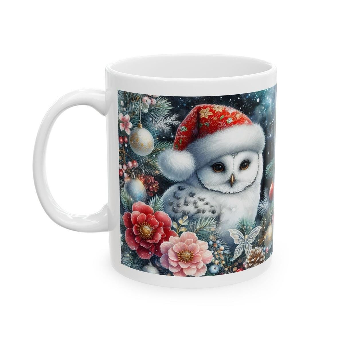This white owl Christmas mug is the perfect addition to your holiday season. The mug features a cute and festive white owl design that is sure to bring a smile to your face every time you use it. The white color of the mug makes it easy to match with any kitchen decor, while the Christmas design adds a festive touch to your holiday season.