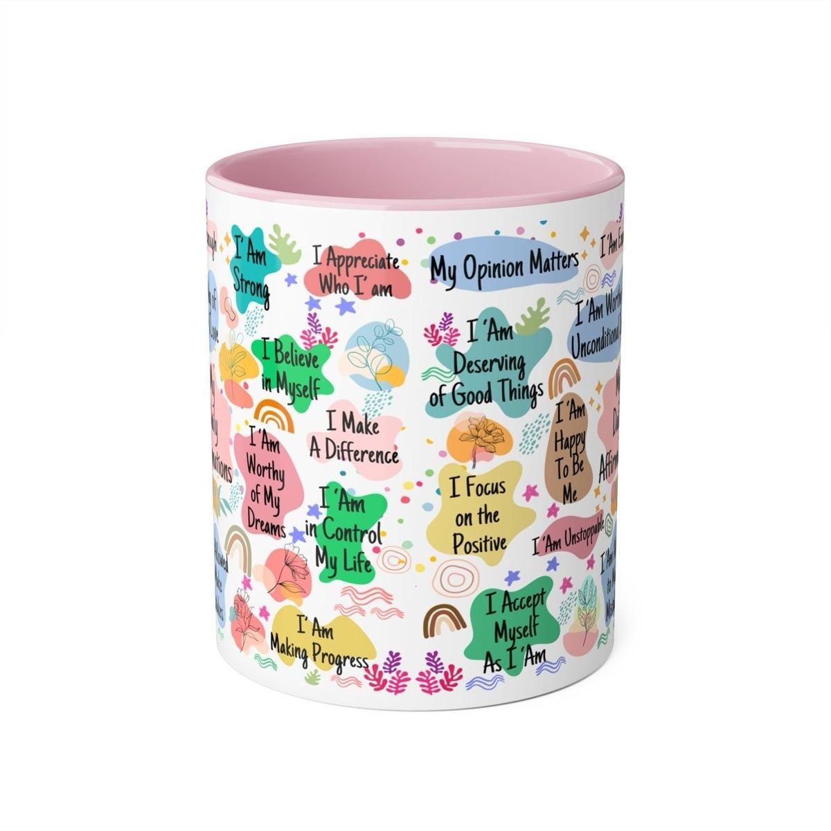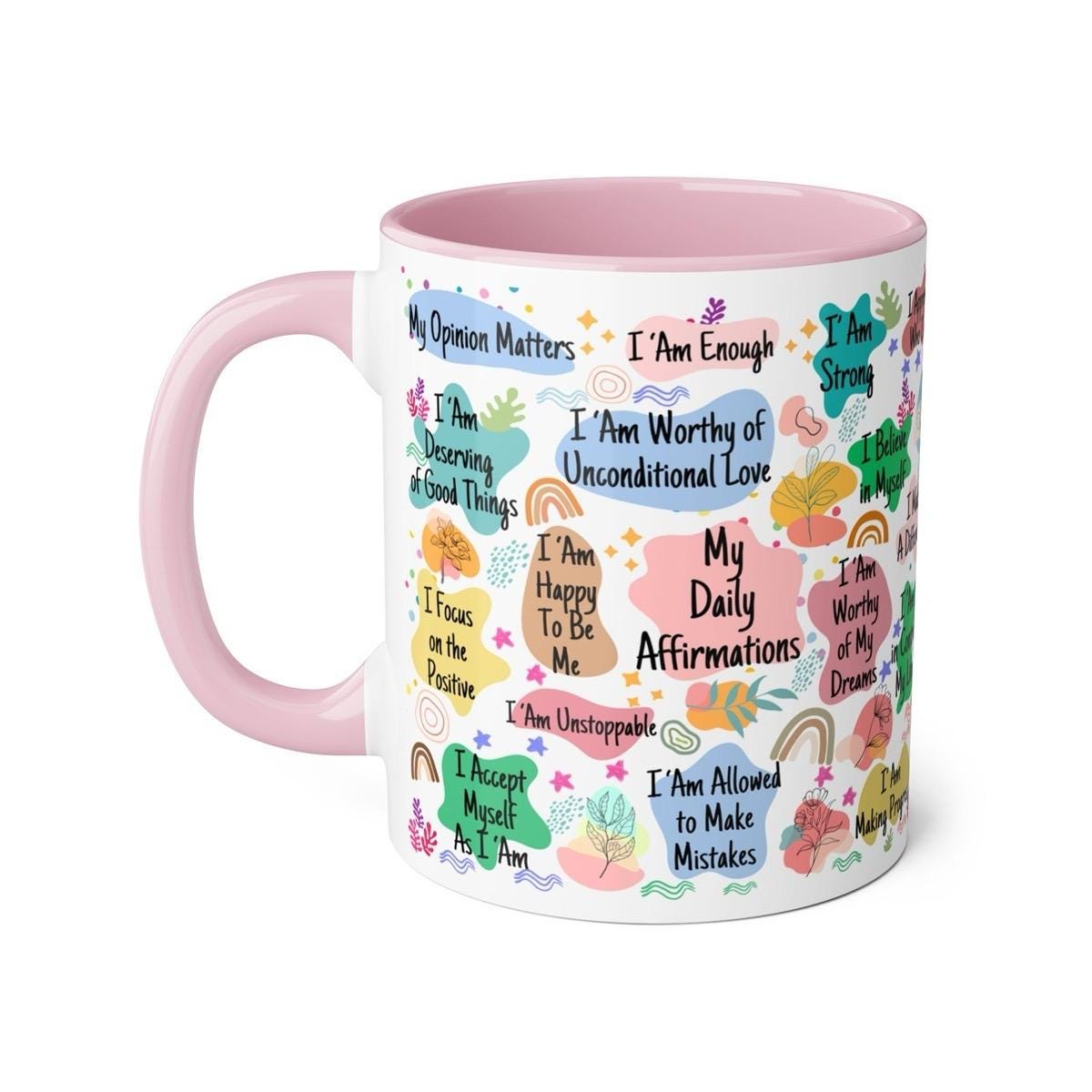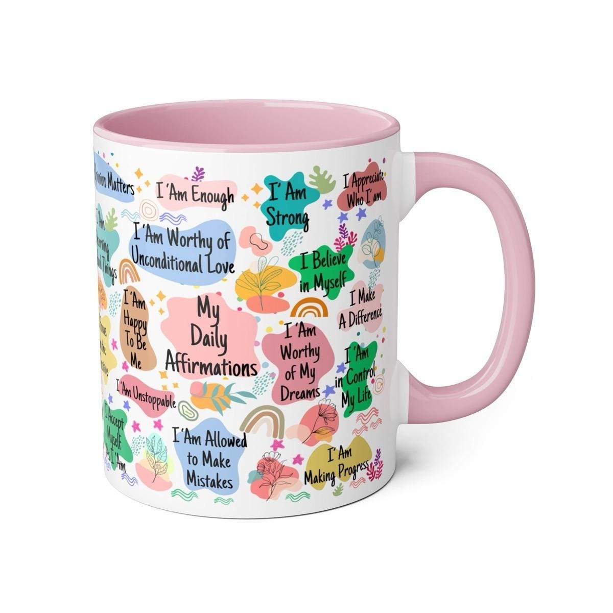 Daily affirmations cute mug mental health self care - perfect for drinking - drinkware, tumblers cup bottles reusable reuse ceramic washable