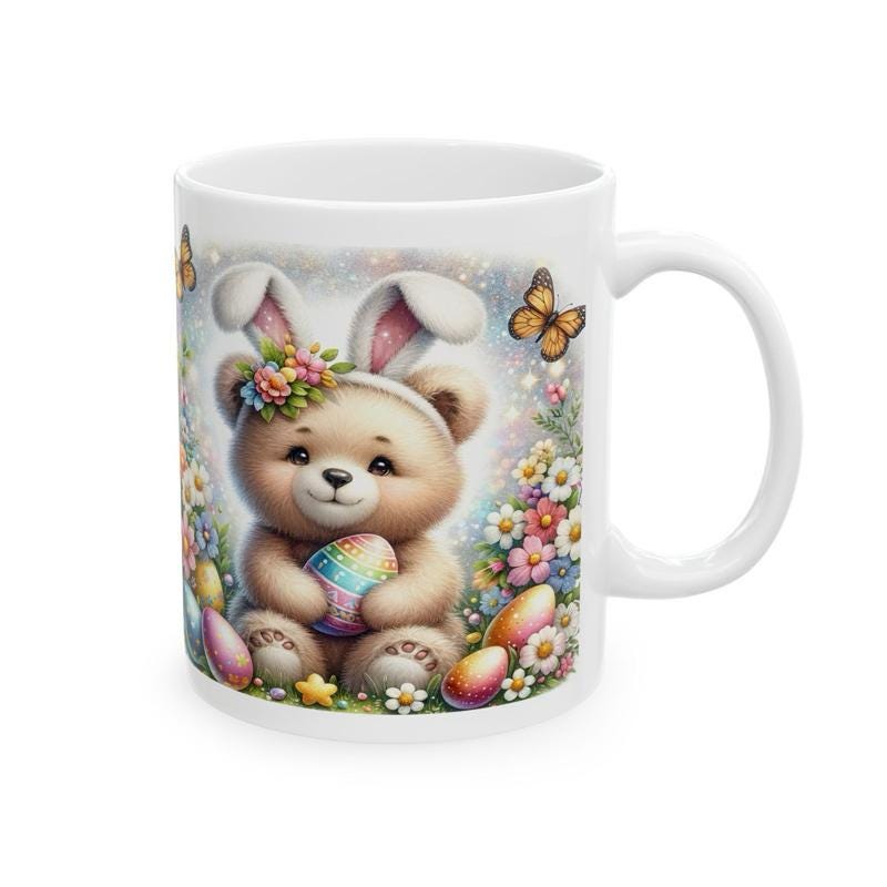 Easter bear bunny mug - cute gift - perfect for hot drinks - drinkware, tumblers cup bottles reusable washable portable reuse ceramic coffee