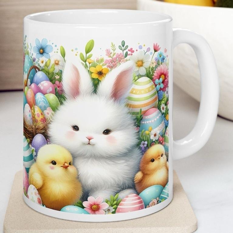 Easter bunny and chicks mug - cute gift - perfect for hot drinks - drinkware, tumblers cup bottles reusable washable portable reuse ceramic