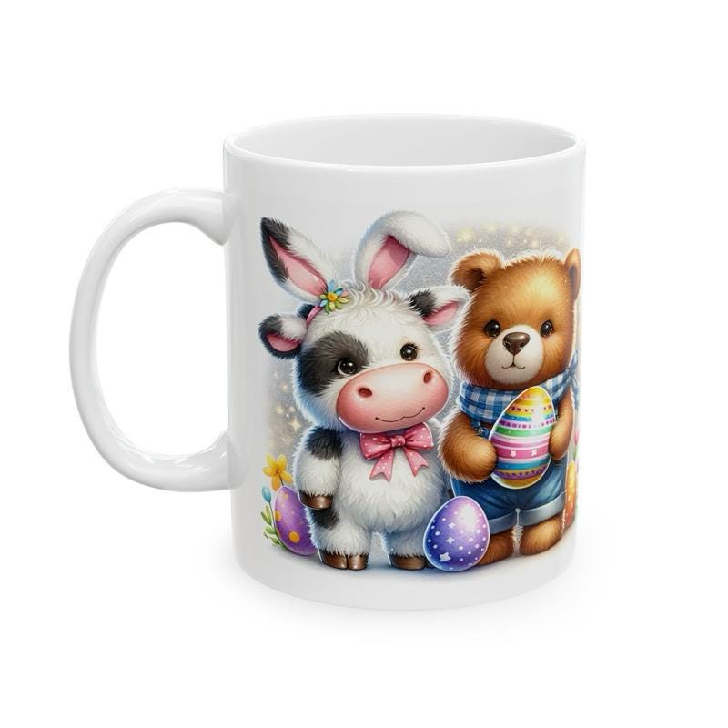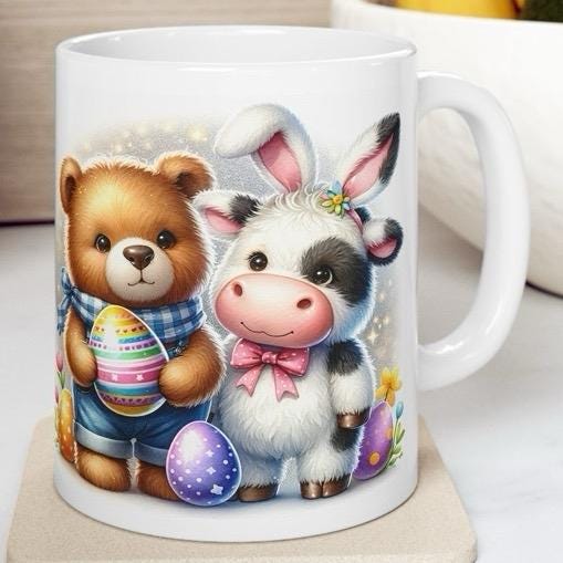 Easter cow bear mug - cute gift - perfect for hot drinks - drinkware, tumblers cup bottles reusable washable portable reuse ceramic coffee e