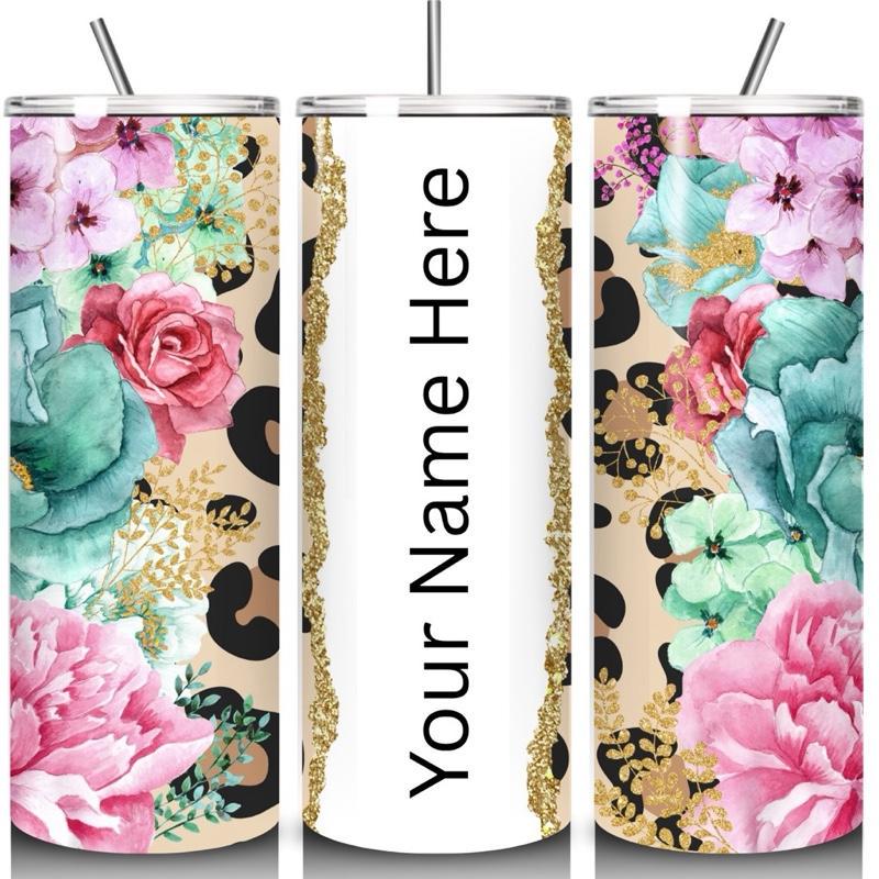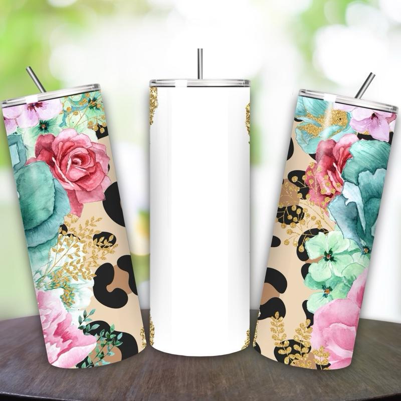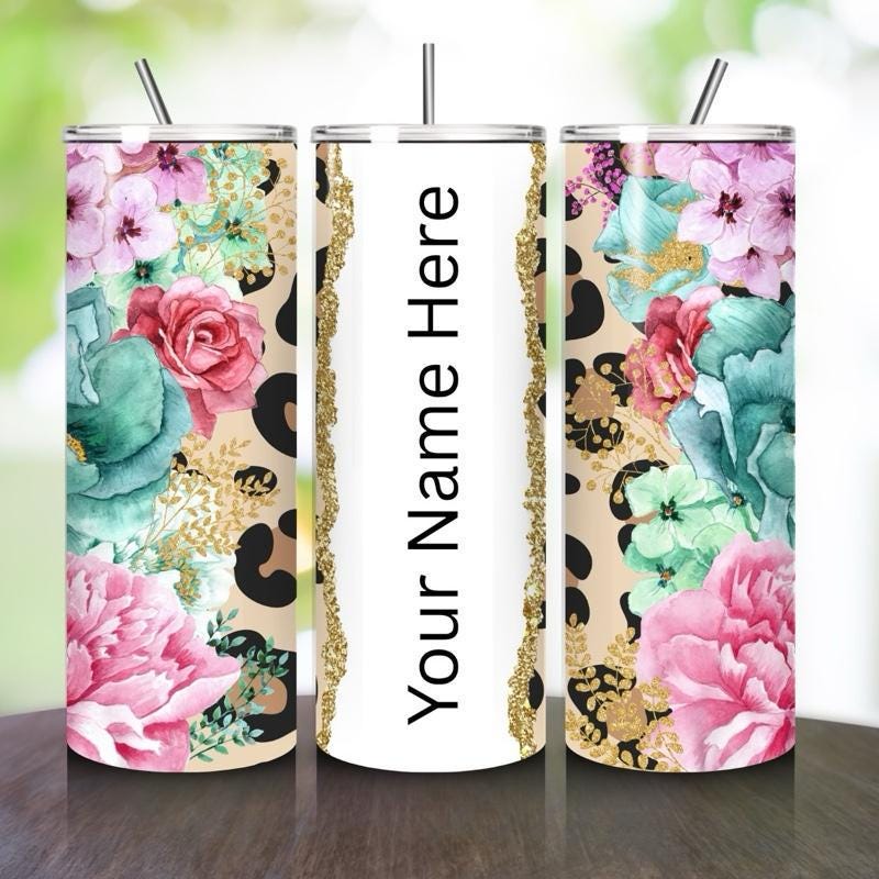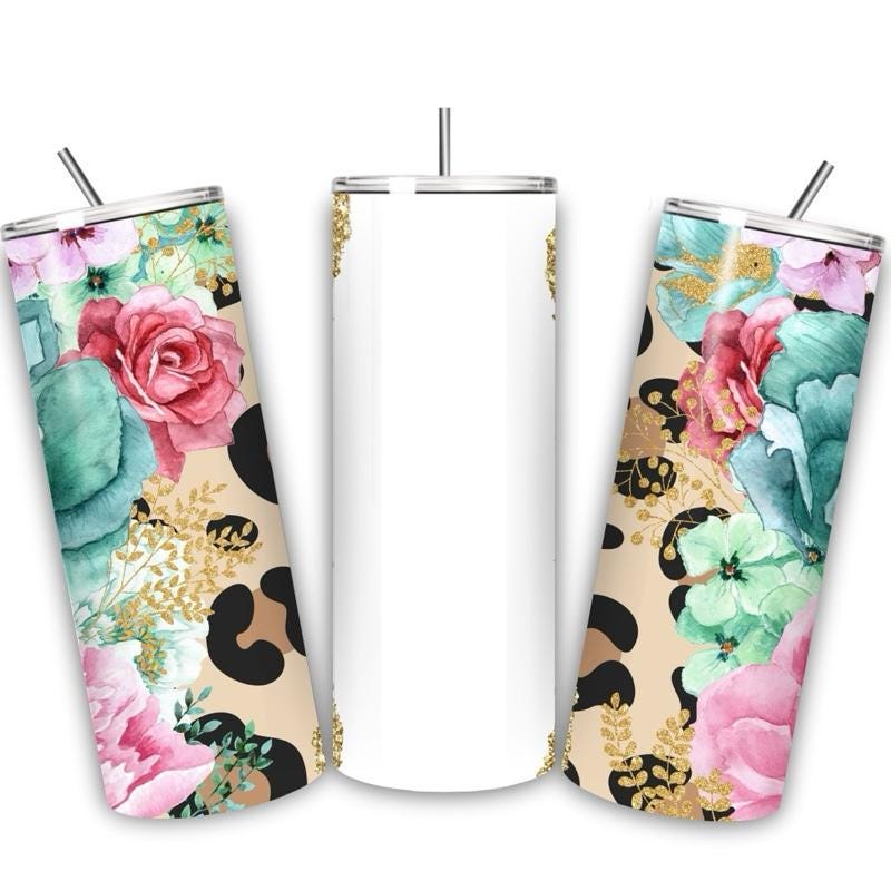 Floral leopard cute tumbler 20oz - perfect for on-the-go hydration - vacuum flask - cup drinkware mug bottles water bottles bottled