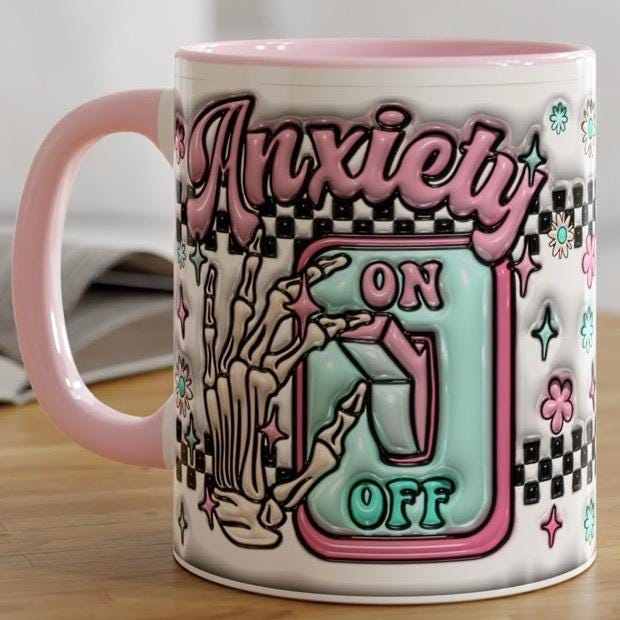 This anxiety mug is the perfect solution for those who need a quick and easy way to relieve anxiety. With its cute and funny design, it can help to reduce stress and anxiety levels. The pink handle and interior of the mug add a touch of fun to the design, making it a great addition to any kitchen or office.