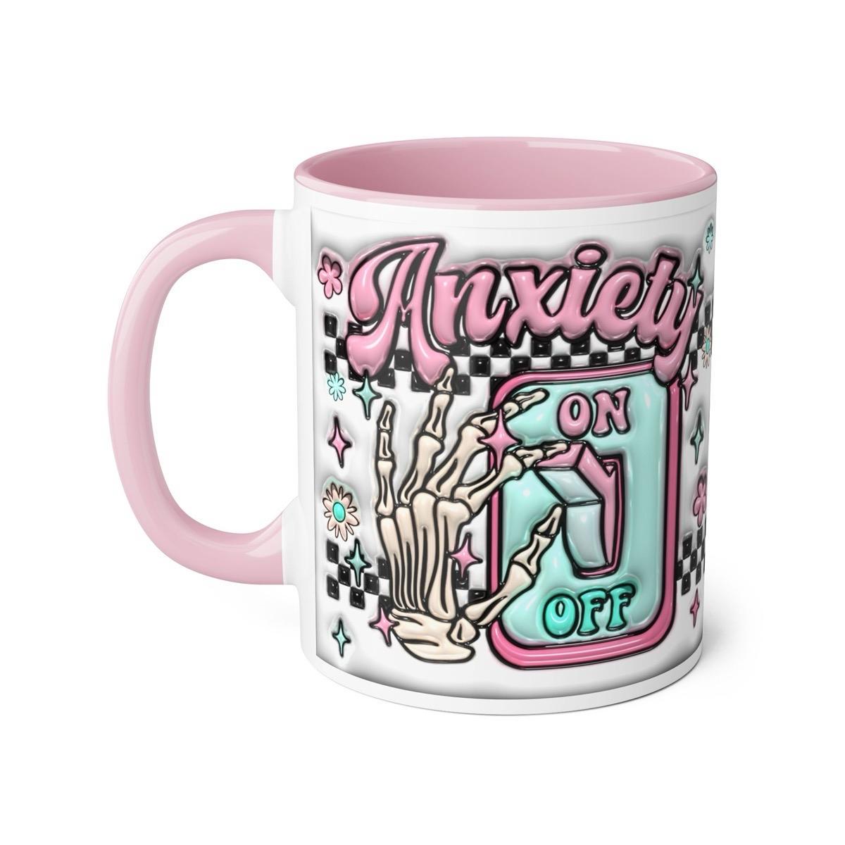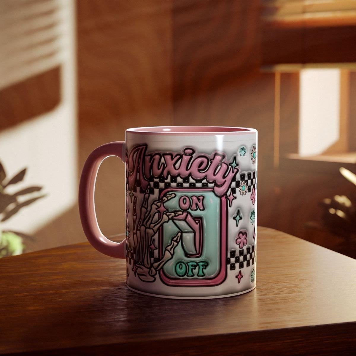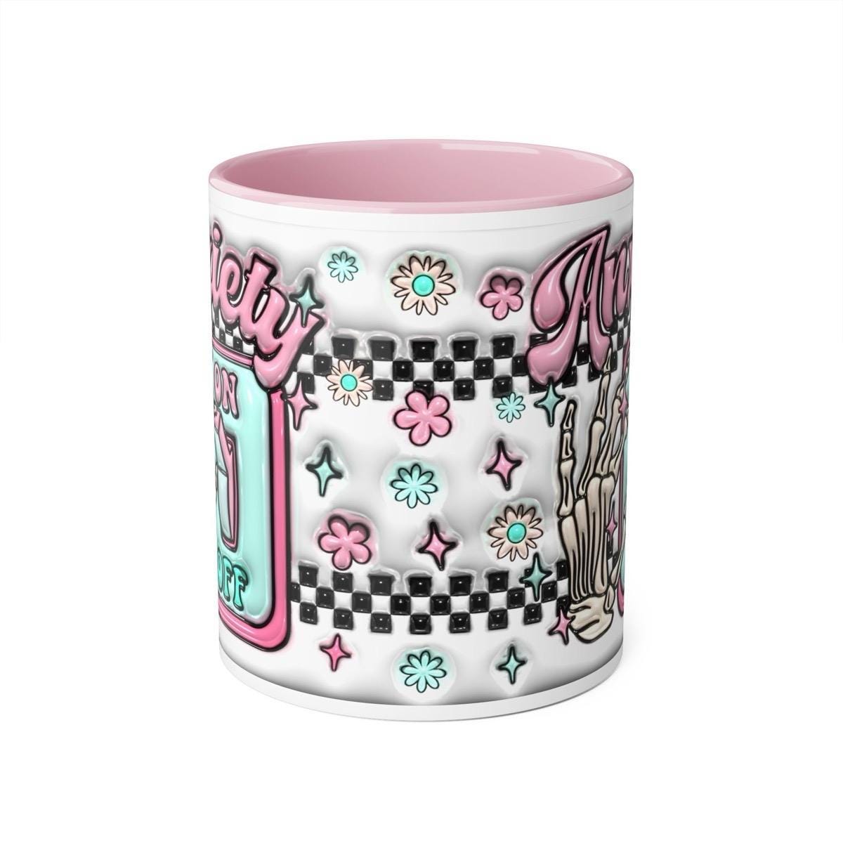 Funny cute anxiety mug with pink handle and interior - perfect for anxiety relief drinkware cup tumbler reusable reuse washable ceramic coff