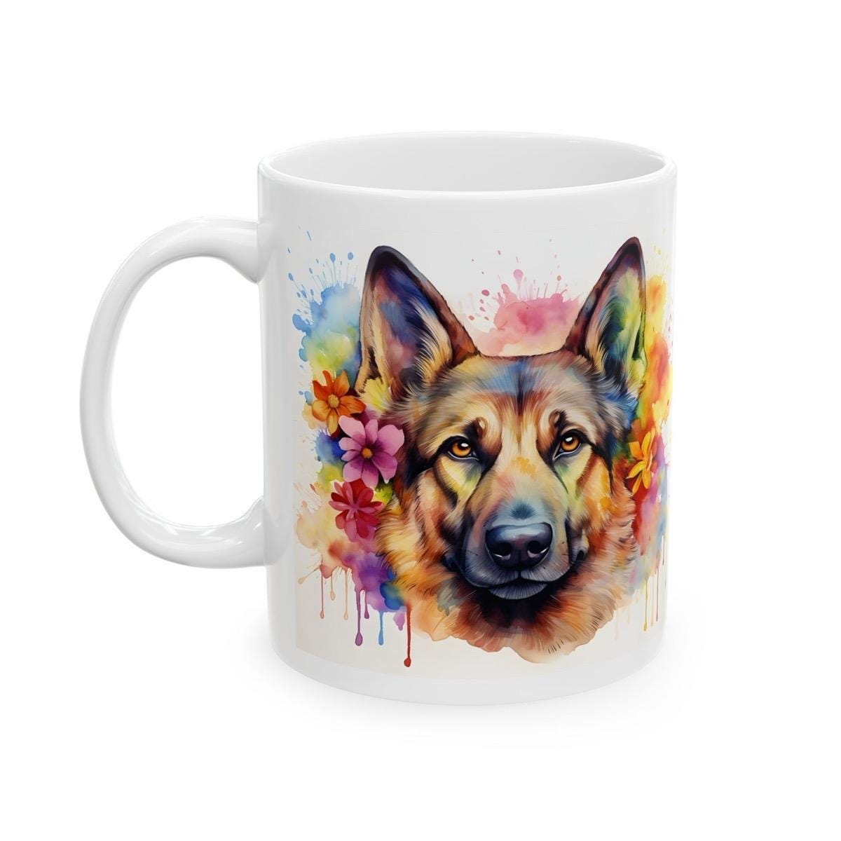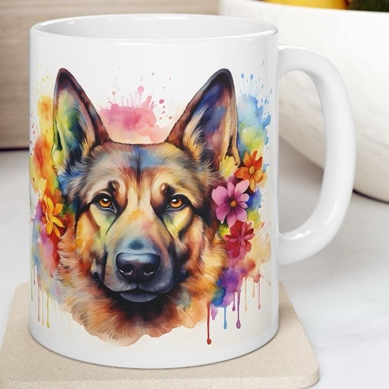 This German Shepherd Floral Coffee Mug is a great way to show your love for dogs and add a touch of elegance to your morning routine. The mug is perfect for coffee or tea lovers who want to enjoy their favorite beverage in a stylish and unique mug. The floral design and German Shepherd design make this mug a great addition to any dog lover's collection.