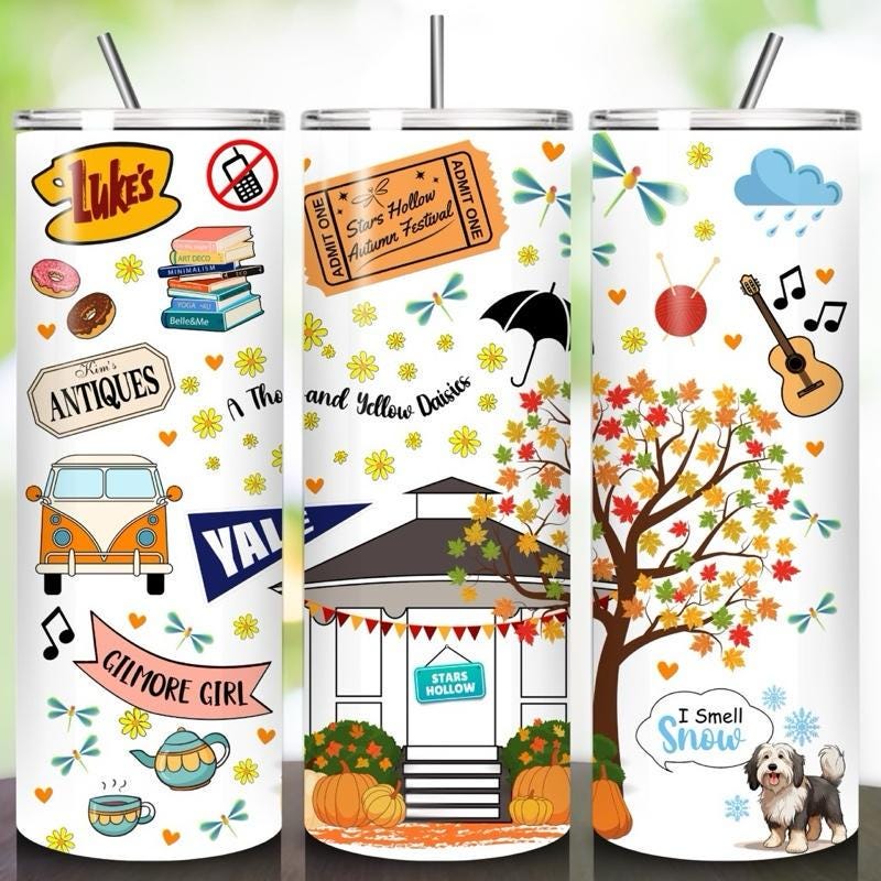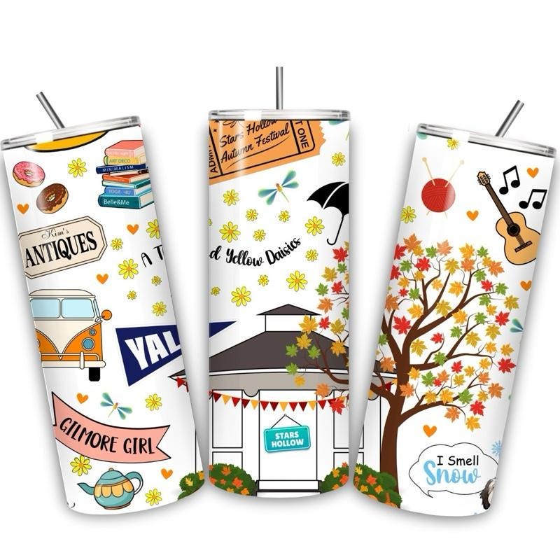 ONE TUMBLER - PHOTOS SHOW A 360 view of the tumbler 💗 So you can see all sides on the tumbler. Only ONE tumbler will arrive if you order one item.• Perfect for Hydration: This Gilmore Girls tumbler is ideal for staying