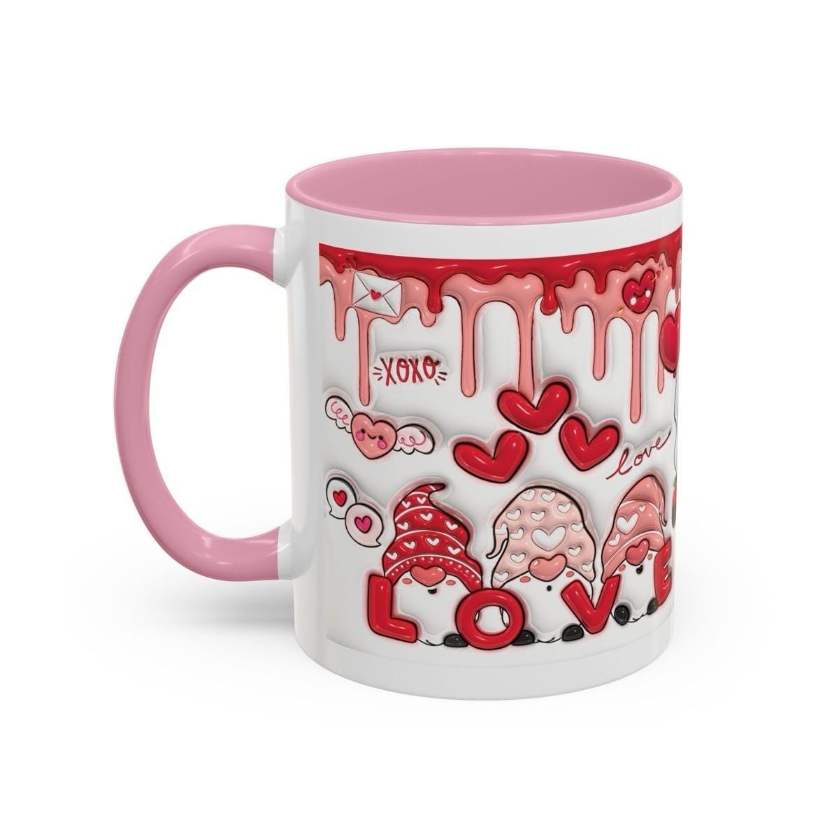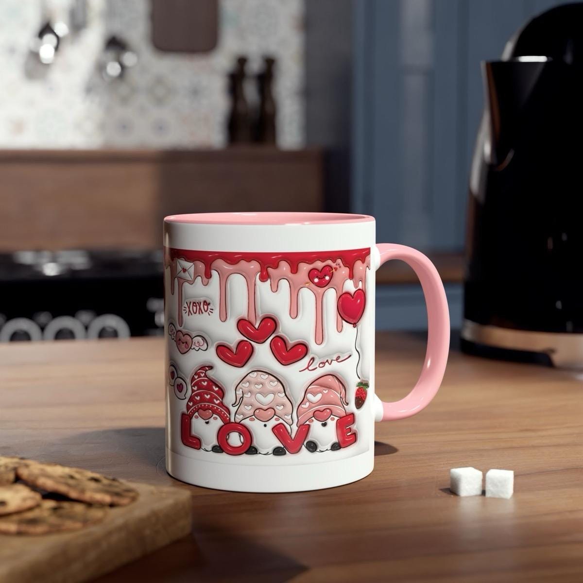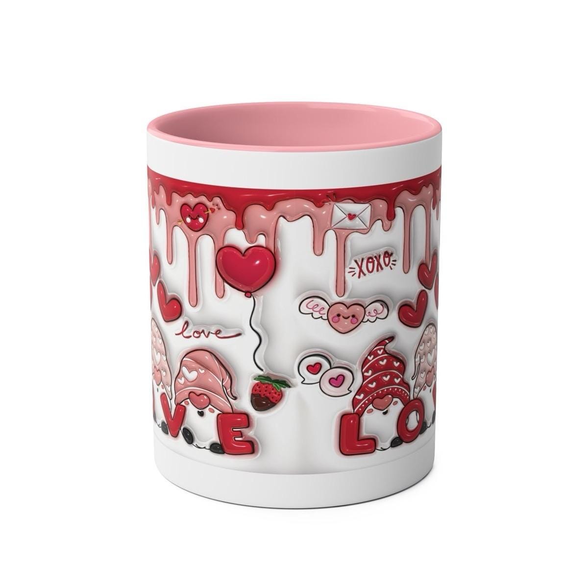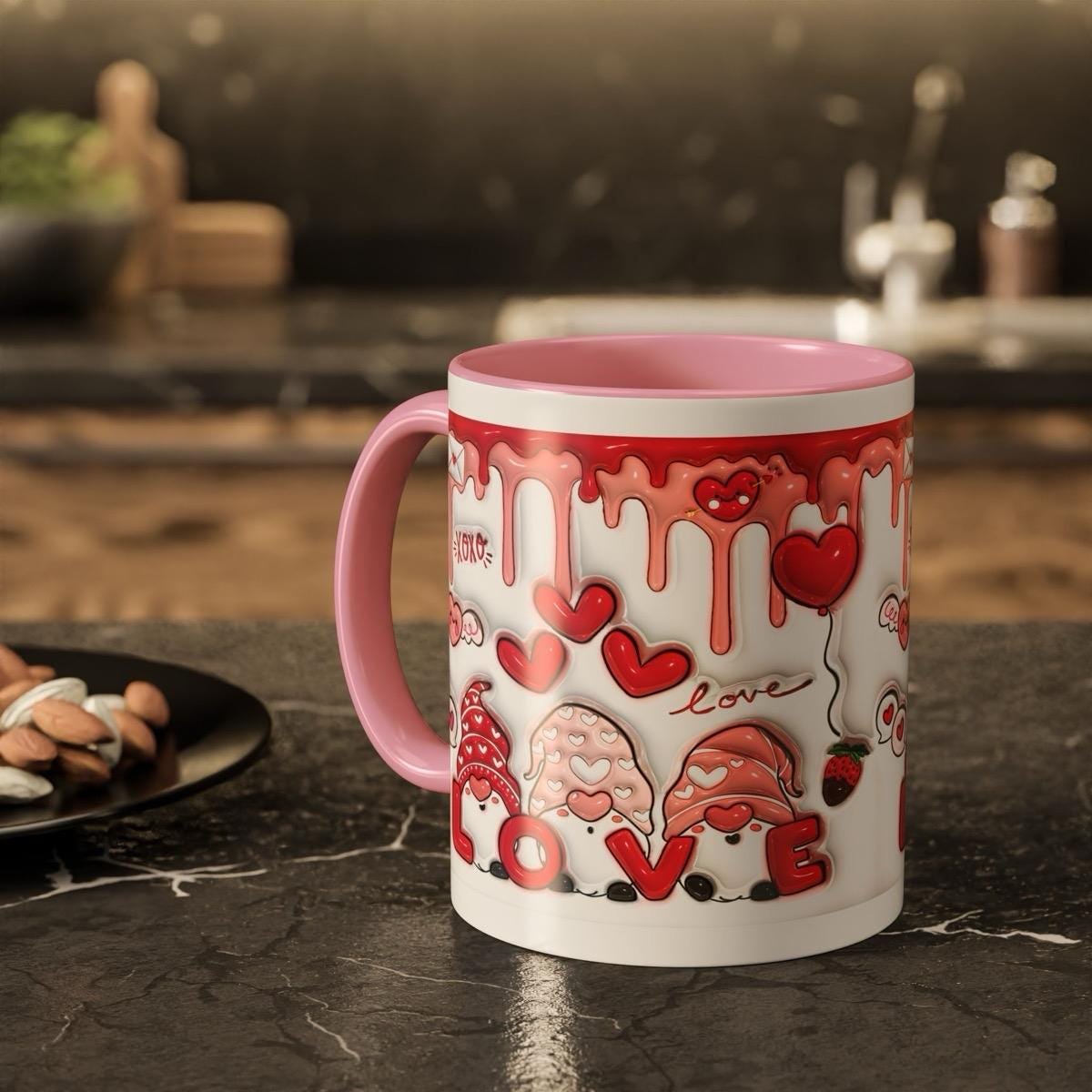 Gonk gnome valentine's day love pink mug gift - cute hearts 3d style drip effect drinkware cup coffee tumblers reusable ceramic washable reu