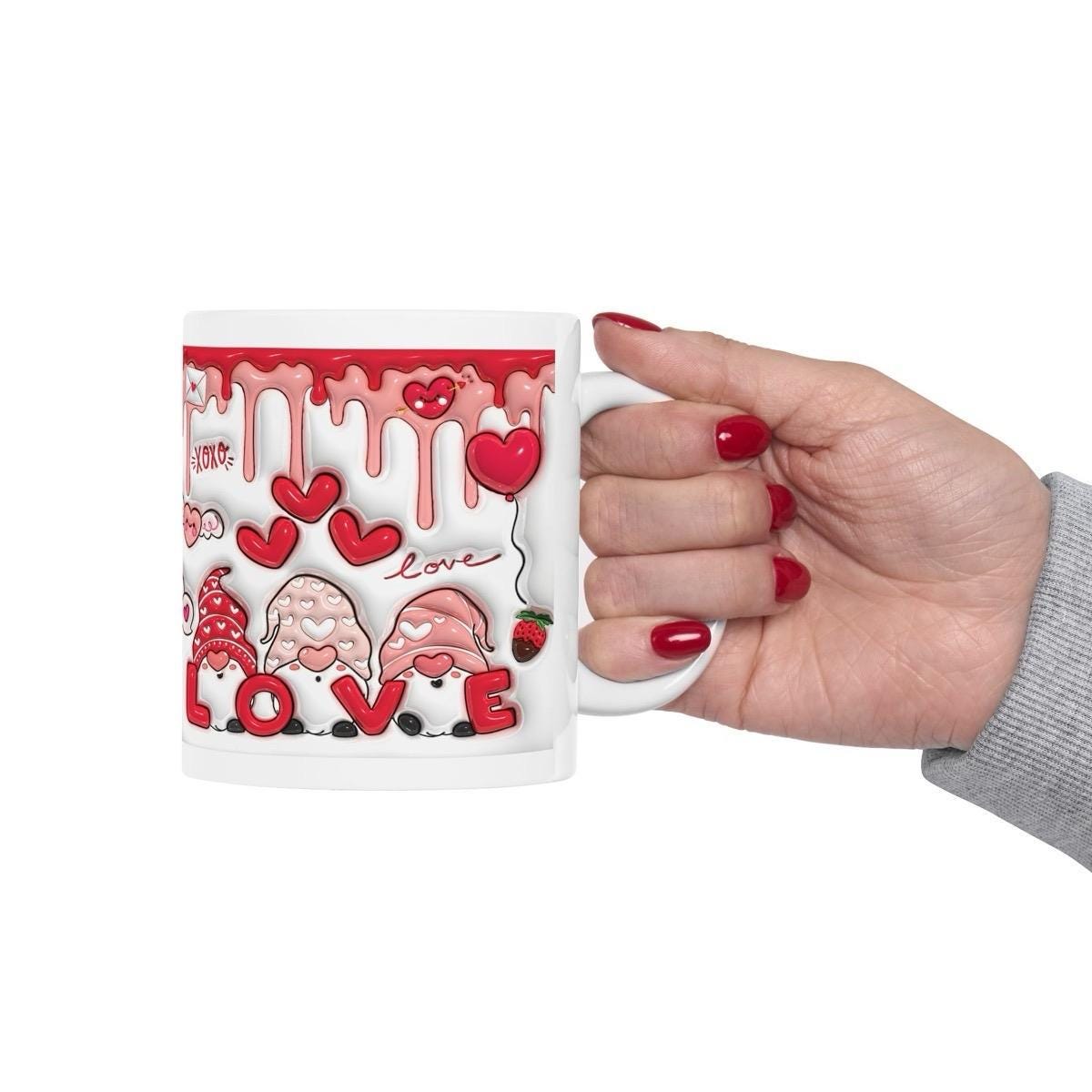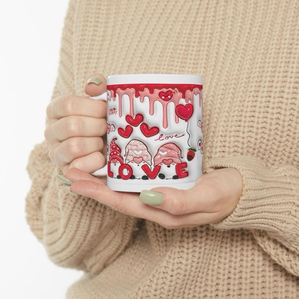 Gonk gnome valentine's love mug gift cute hearts 3d style drip effect - perfect for valentine's - drinkware, tumblers cup coffee reusable ce