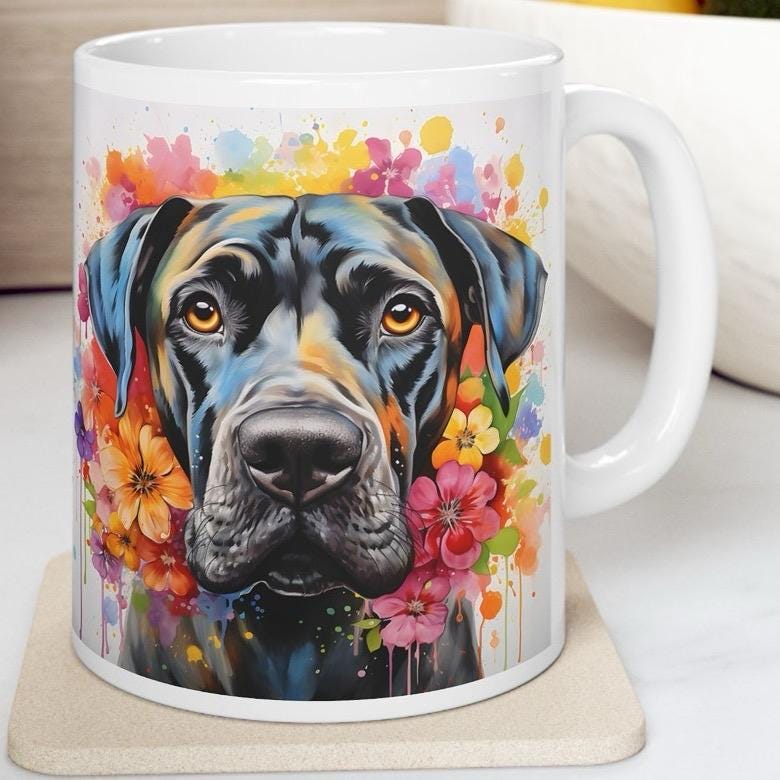 This Great Dane Floral Art Mug is the perfect gift for dog lovers who want to enjoy their favorite beverage in style. The mug features a beautiful floral design that adds a touch of elegance to any kitchen or office. The design is centered around a Great Dane, making it a great choice for dog owners who want to show off their love for their furry friends.