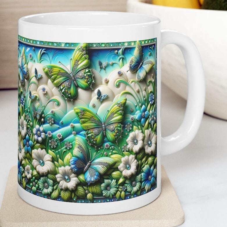 This mug is perfect for those who appreciate the beauty of nature and want to bring a touch of it into their daily lives. The Green Blue Butterfly Garden 3D Mug is a great gift for friends and family who love to enjoy a cup of tea or coffee in a unique and beautiful mug.