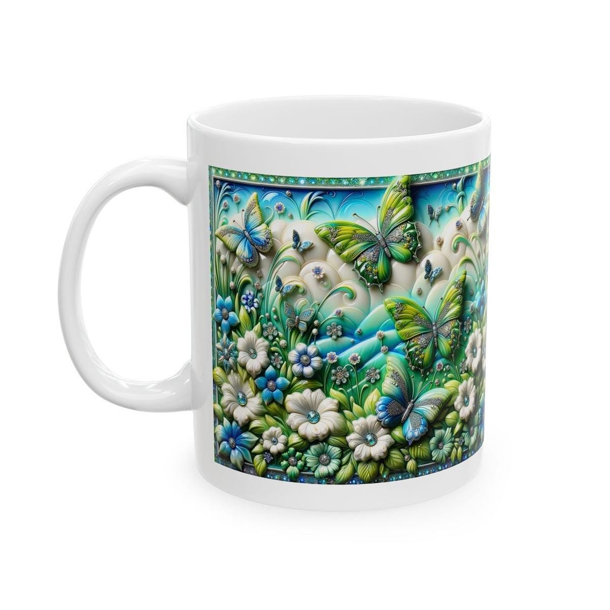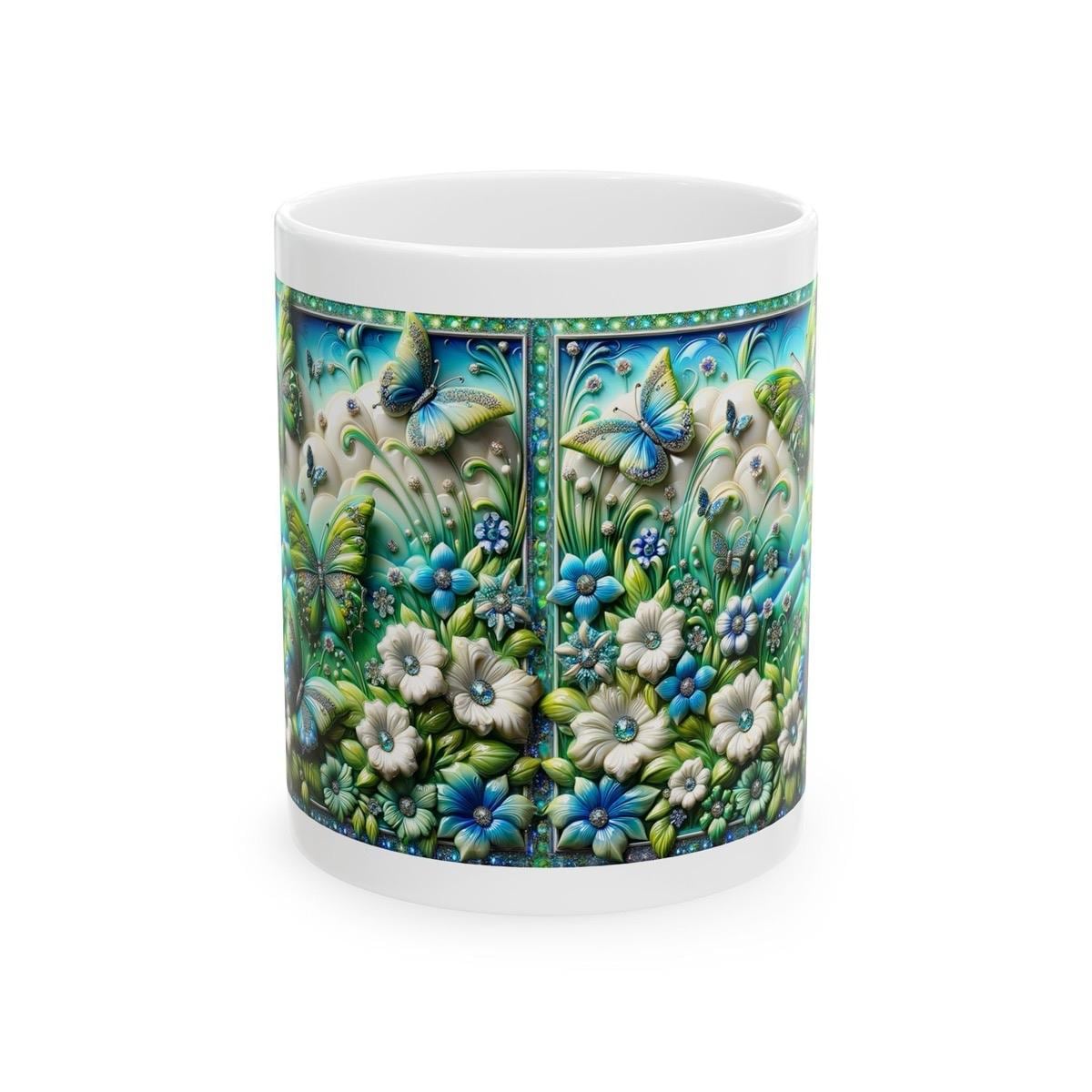 Green blue butterfly garden 3d mug - perfect for your morning drinks - drinkware, tumblers cup reusable washable coffee reuse ceramic xmas