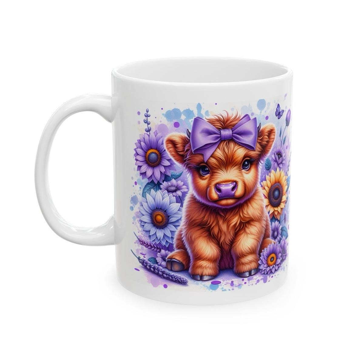 The Highland Cow in Purple Flowers 3D Mug is perfect for those who love cows and flowers. The 3D design adds depth and dimension to the mug, making it more interesting to look at. The purple flowers add a touch of elegance and beauty to the design, making it more visually appealing.