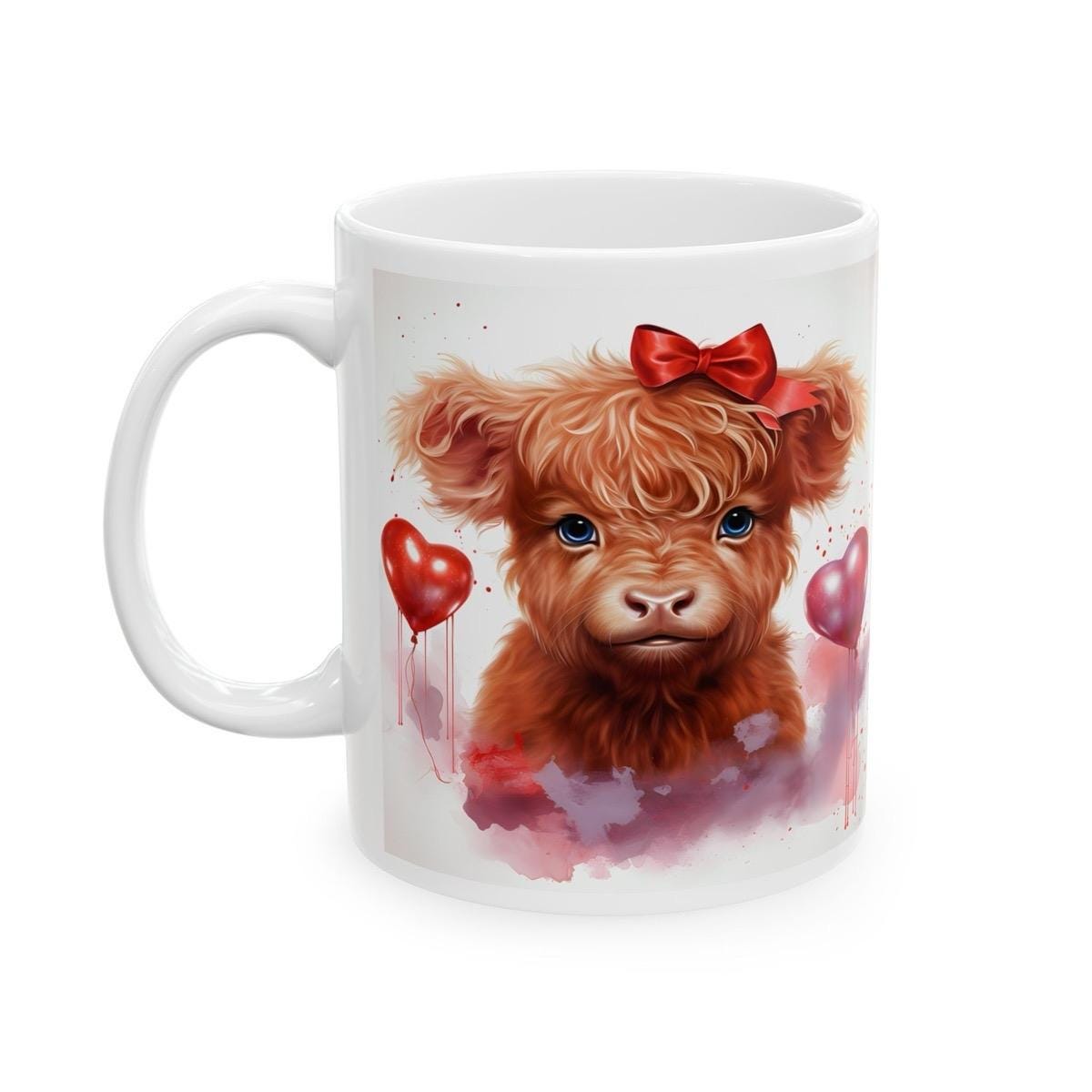 This Highland Cow Mug is the perfect addition to your drinkware collection. The mug is designed to be used for drinks and is perfect for Valentine's Day. The Highland Cow design adds a unique and cute touch to the mug, making it stand out from other mugs.