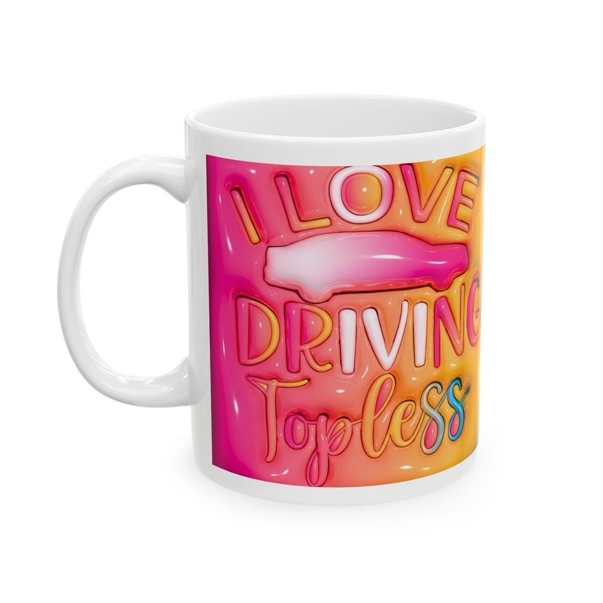 I love driving topless funny mug - perfect for coffee and tea - drinkware, cup tumblers washable bottles reusable ceramic reuse gifts rude m
