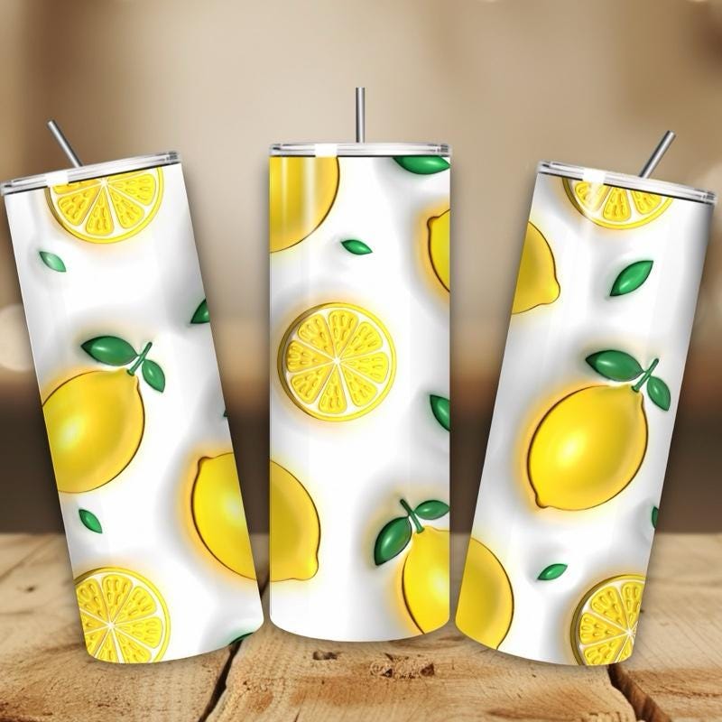 ONE TUMBLER - PHOTOS SHOW A 360 view of the tumbler 💗 So you can see all sides on the tumbler. Only ONE tumbler will arrive if you order one item.Introducing the Lemon Summer fruit 20oz Tumbler, a stylish and portable beverage flask that is perfect for any occasion. This tumbler is not only a flask bottle but also a mug, bottle, and water bottle, making it a versatile addition to your drinkware collection.