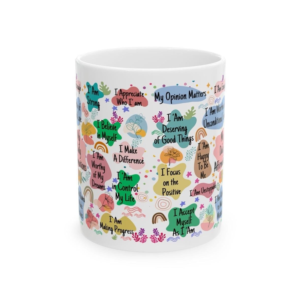 This mug is designed to promote mental health and well-being. It features positive affirmations that can help to boost confidence and reduce negative thoughts. The mug is perfect for those who want to start their day with a positive mindset and a reminder of their worth.