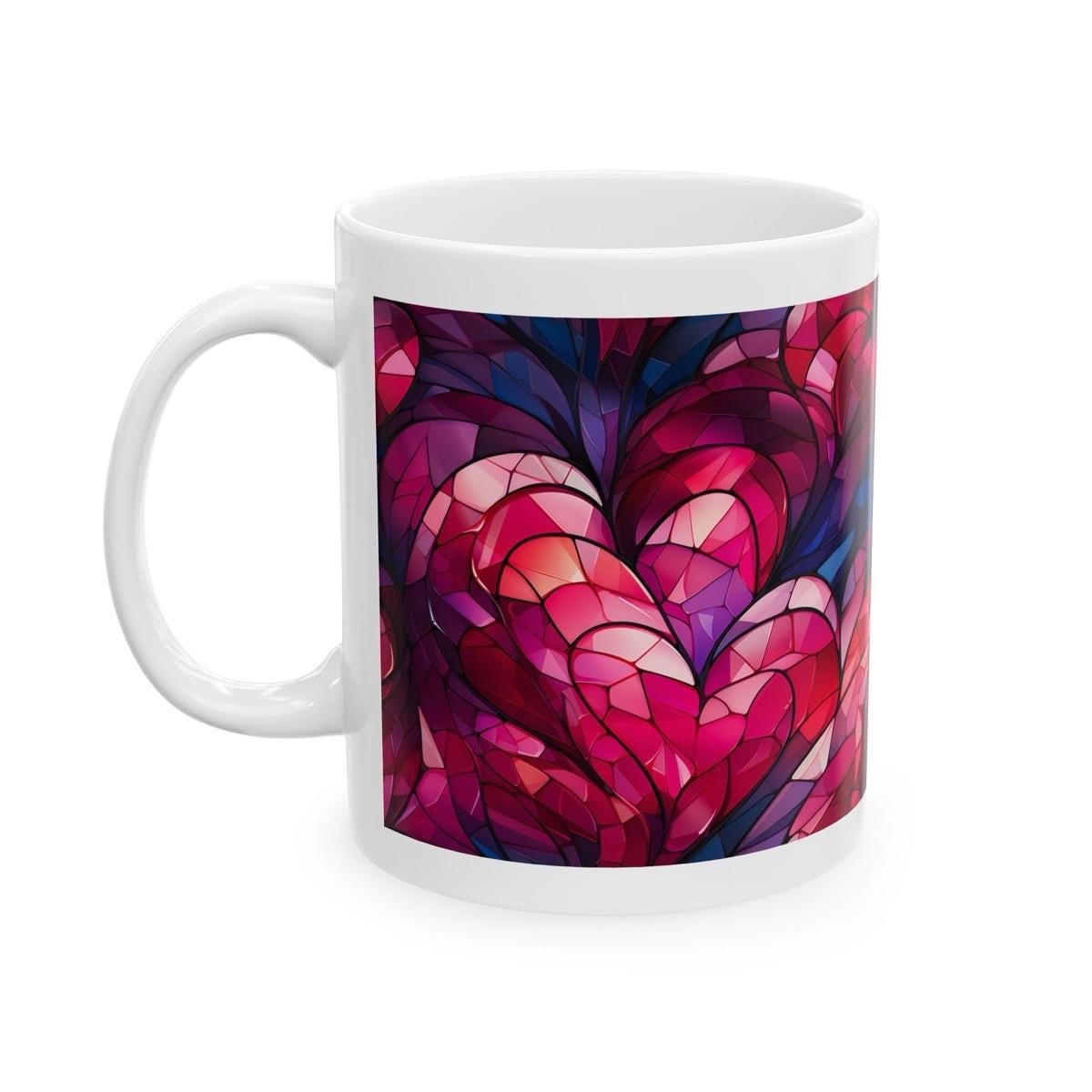 Mosaic stained glass hearts style mug - xmas christmas valentines gifts mugs for drinks - drinkware tumbler reusable washable cup reuse cera