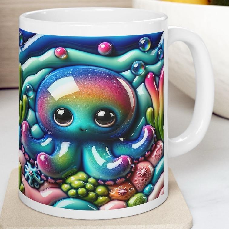 Introducing the multicoloured cute octopus 3D mug, a fun and unique addition to your mug collection. This mug features a playful octopus design that is sure to bring a smile to your face every time you use it. The 3D design adds depth and dimension to the mug, making it stand out from other mugs.
