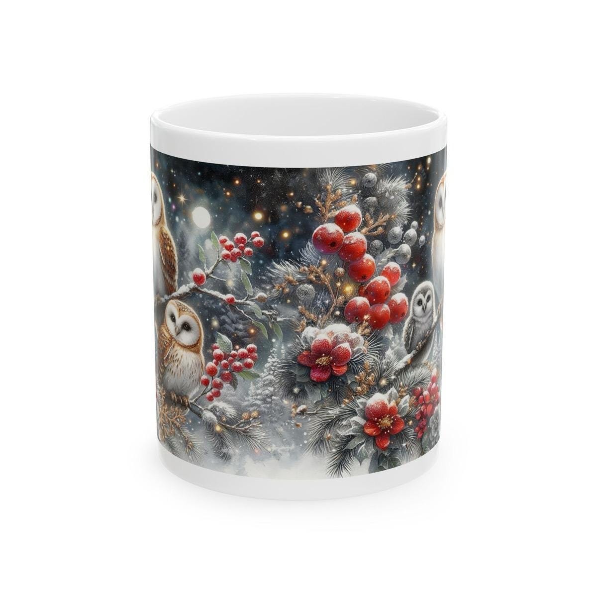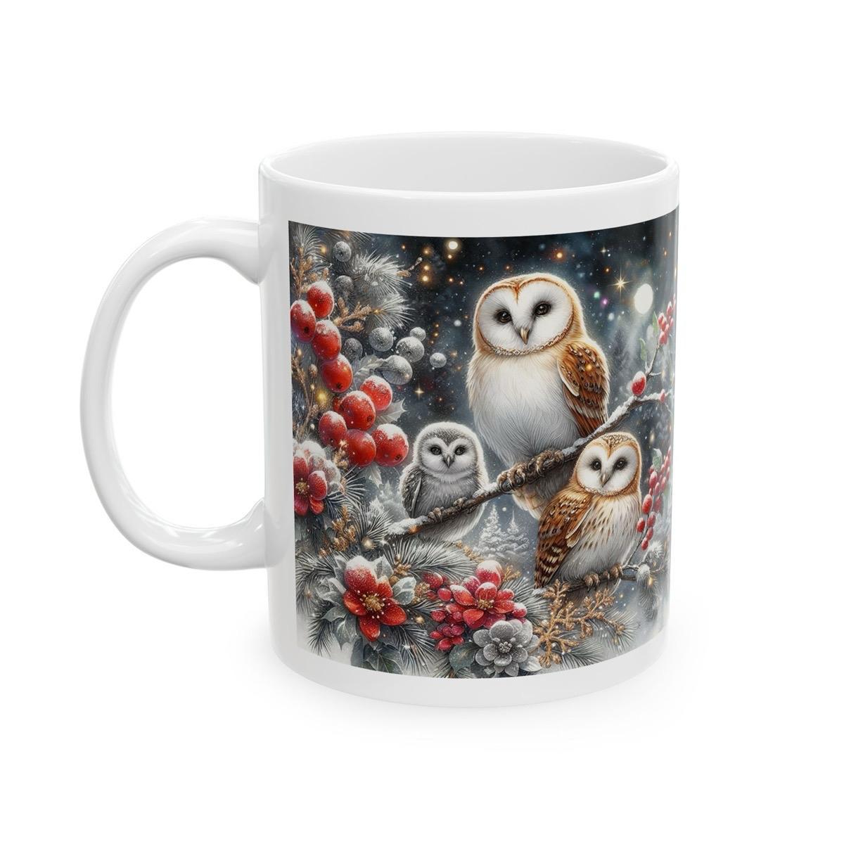 This Christmas mug is a perfect addition to your holiday season. The mug features an owl family design that adds a festive touch to your morning coffee or tea. The mug is made of durable ceramic material that is easy to clean and can withstand high temperatures.
