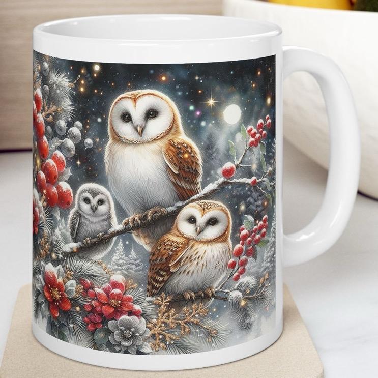 Overall, this Christmas mug is a must-have for anyone who loves owls and the holiday season. It is a great way to start your day with a warm cup of coffee or tea and add a touch of holiday cheer to your home. The mug is a thoughtful and unique gift that is sure to be appreciated by anyone who loves owls or the holiday season.