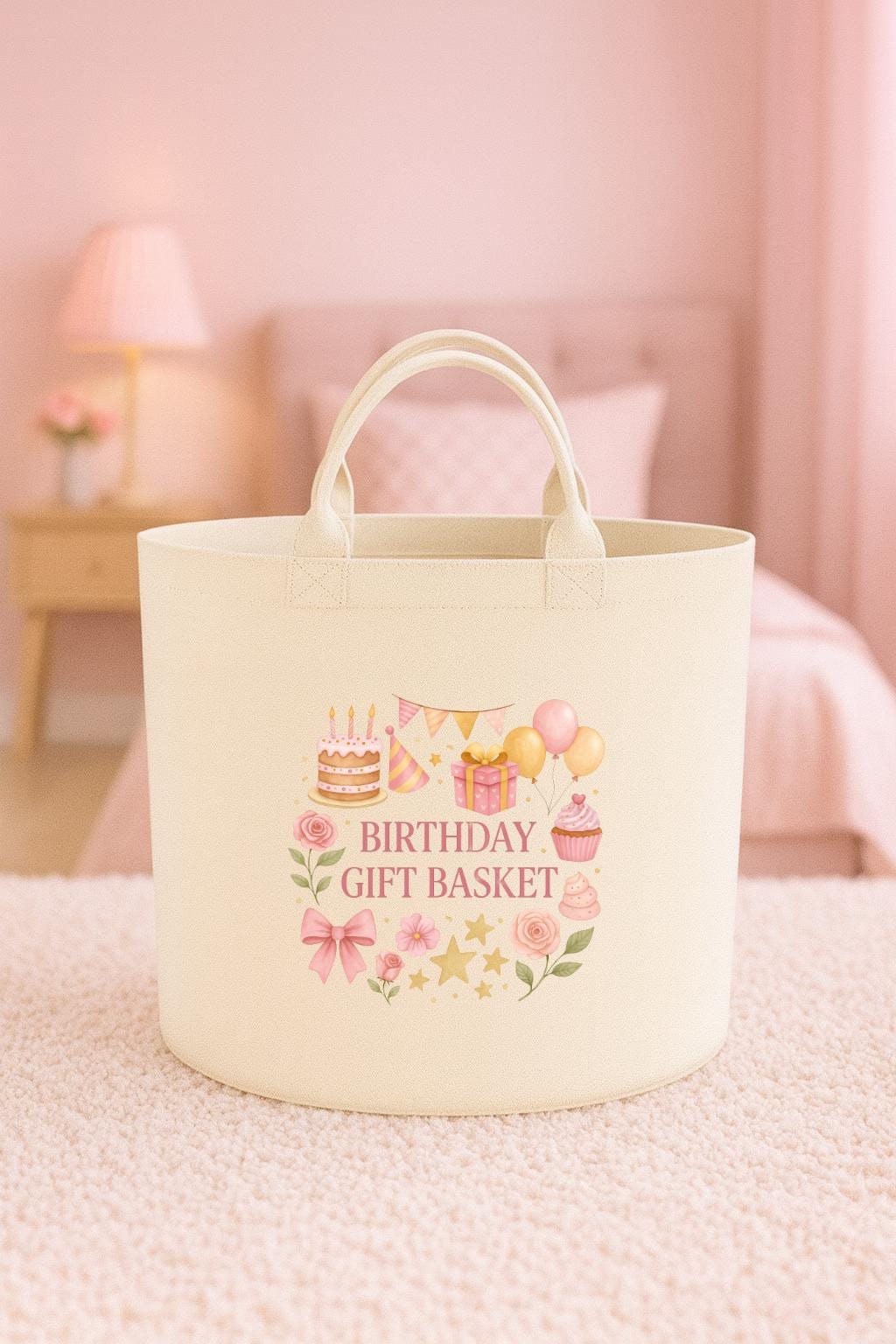 Designed in a soft pink and neutral birthday theme, this basket is both practical and beautiful – making it a thoughtful addition to any celebration.