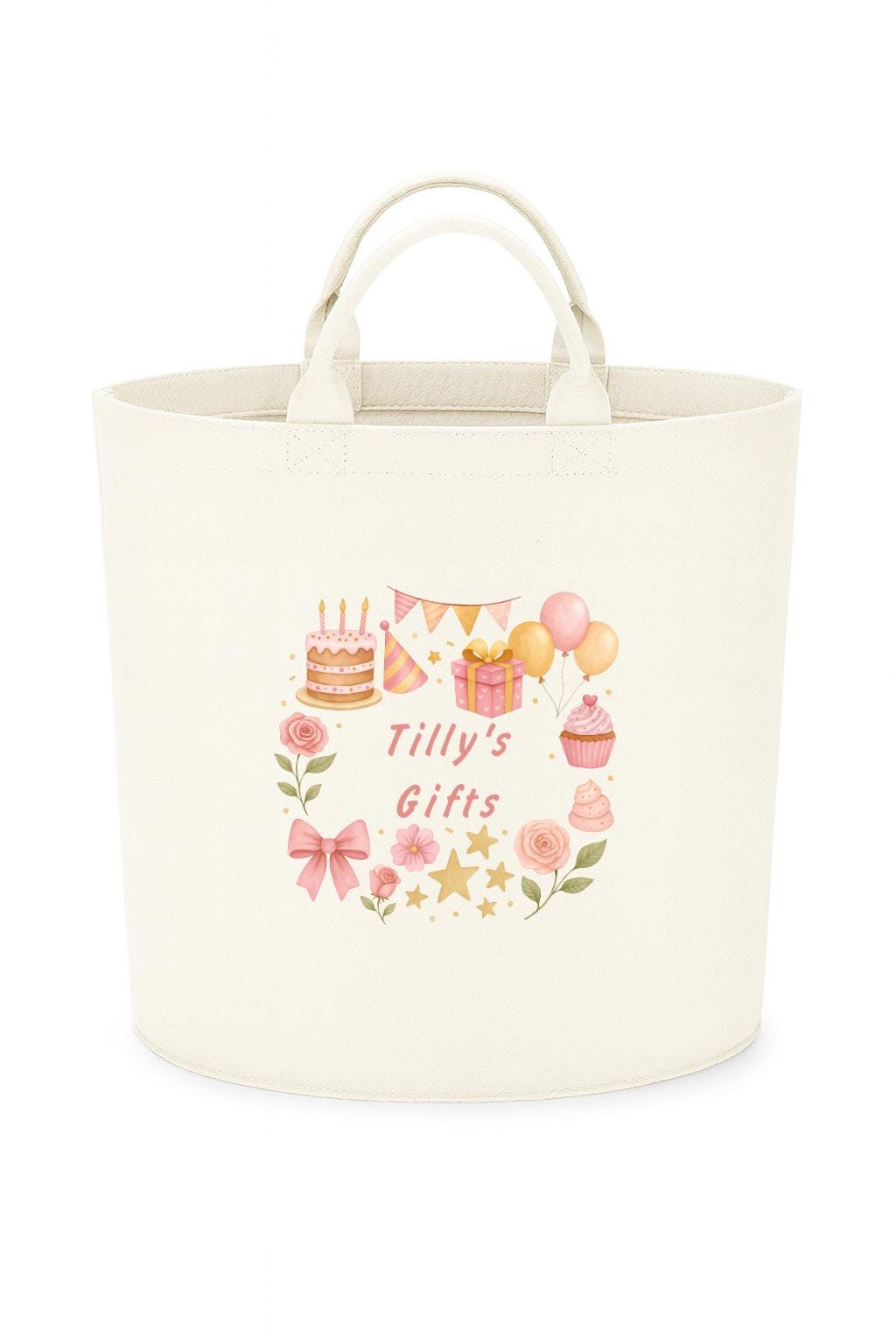 Personalised birthday gift basket storage Felt Trug, perfect gifts girls kids gift fun storage basket trugs toy storage cute friend mum