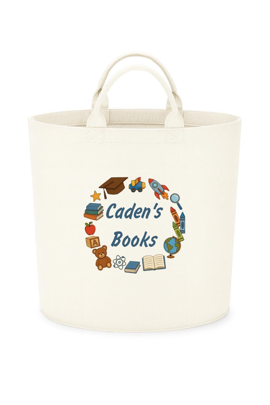 Personalised book basket storage Felt Trug, perfect gifts boys kids gift fun storage basket trugs toy storage cute friend mum book storage