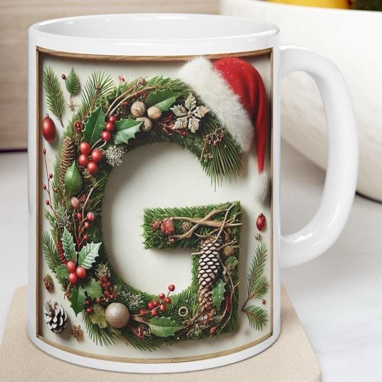 Personalised 'g' edition christmas mug - unique gift for xmas - stocking filler - drinkware washable reusable reuse ceramic cup tumbler coff