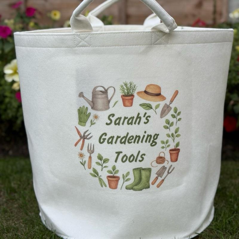Personalised gardening tools gift basket storage Felt Trug, perfect gifts women men kids gift fun storage basket trugs toy storage cute friend mum Lightweight Organiser Book teddies neutral gifts garden lover gardening storage