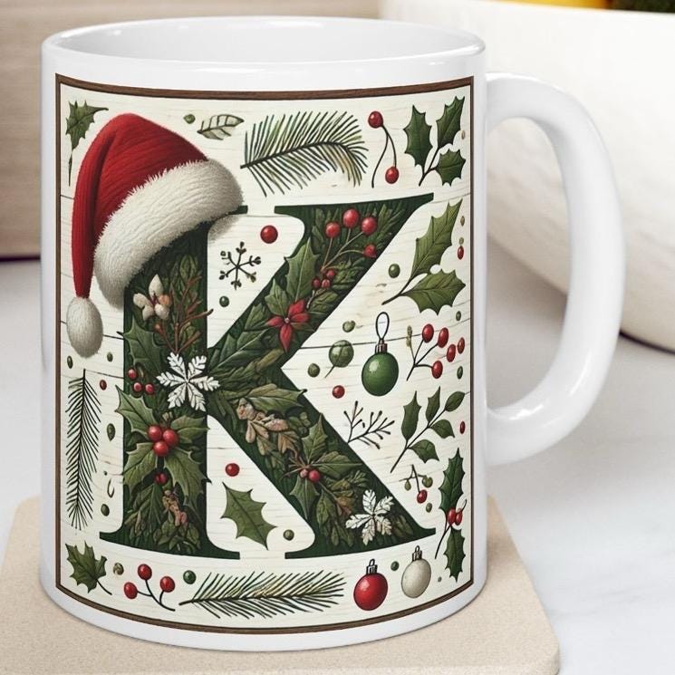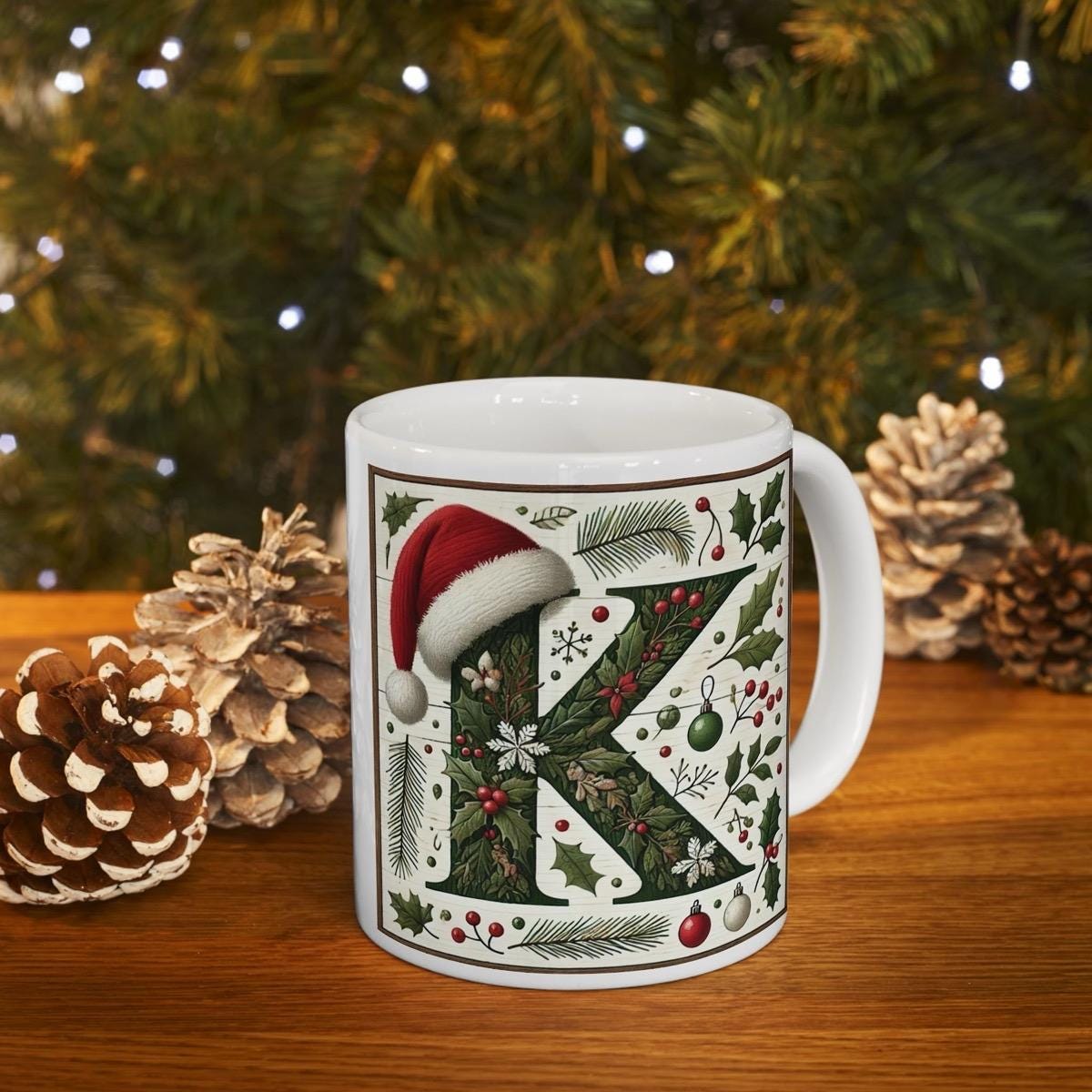 Personalised 'k' edition christmas mug - unique gift for xmas - stocking filler - drinkware washable reusable reuse ceramic cup tumbler coff
