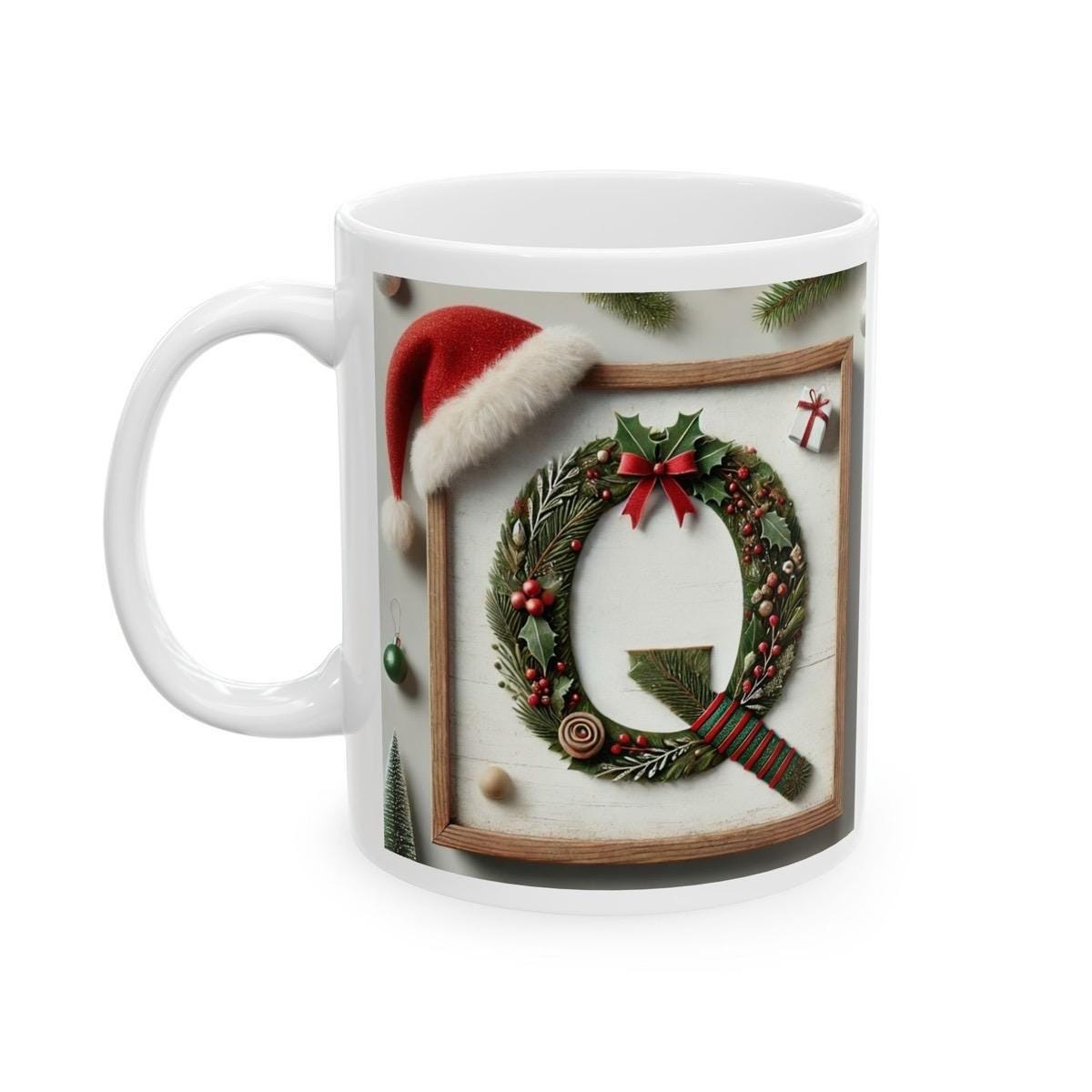 Personalised 'q' edition christmas mug - unique gift for xmas - stocking filler - drinkware washable reusable reuse ceramic cup tumbler coff