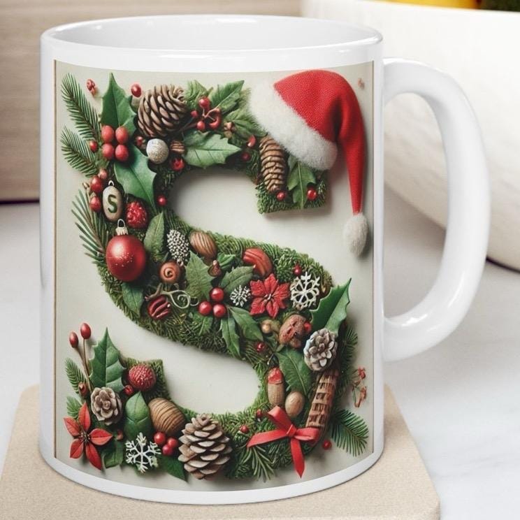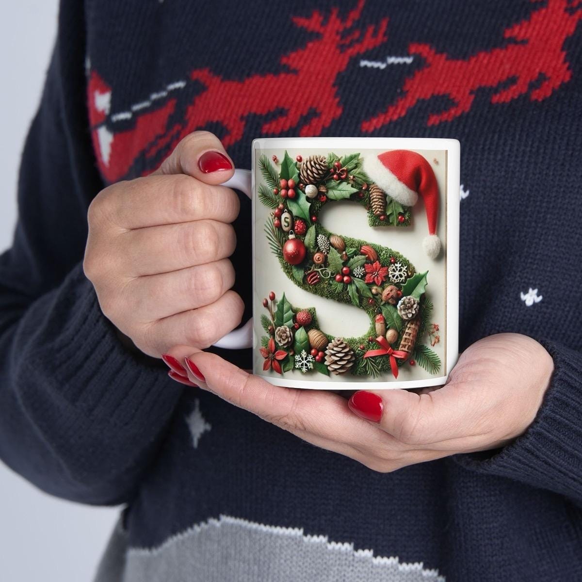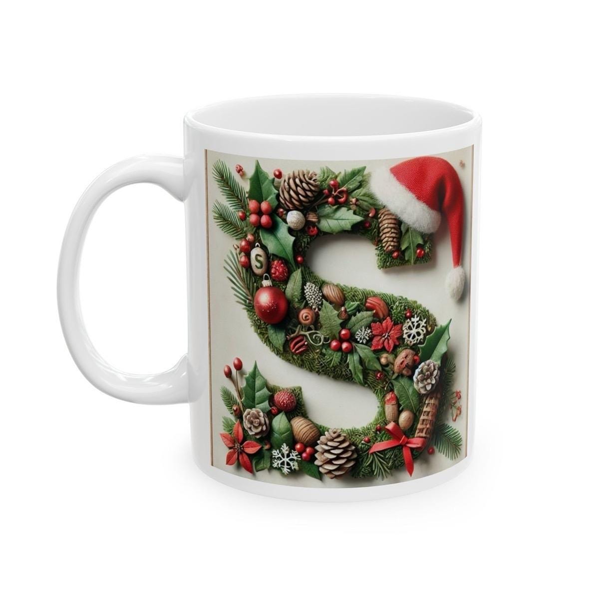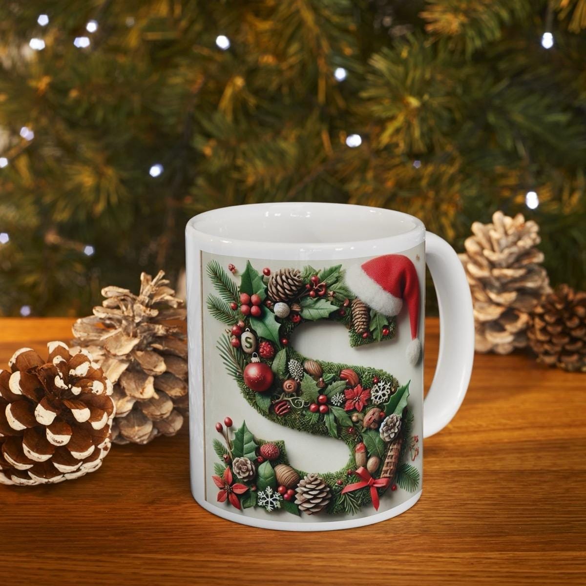 Personalised 's' edition christmas mug - unique gift for xmas - stocking filler - drinkware washable reusable reuse ceramic cup tumbler coff