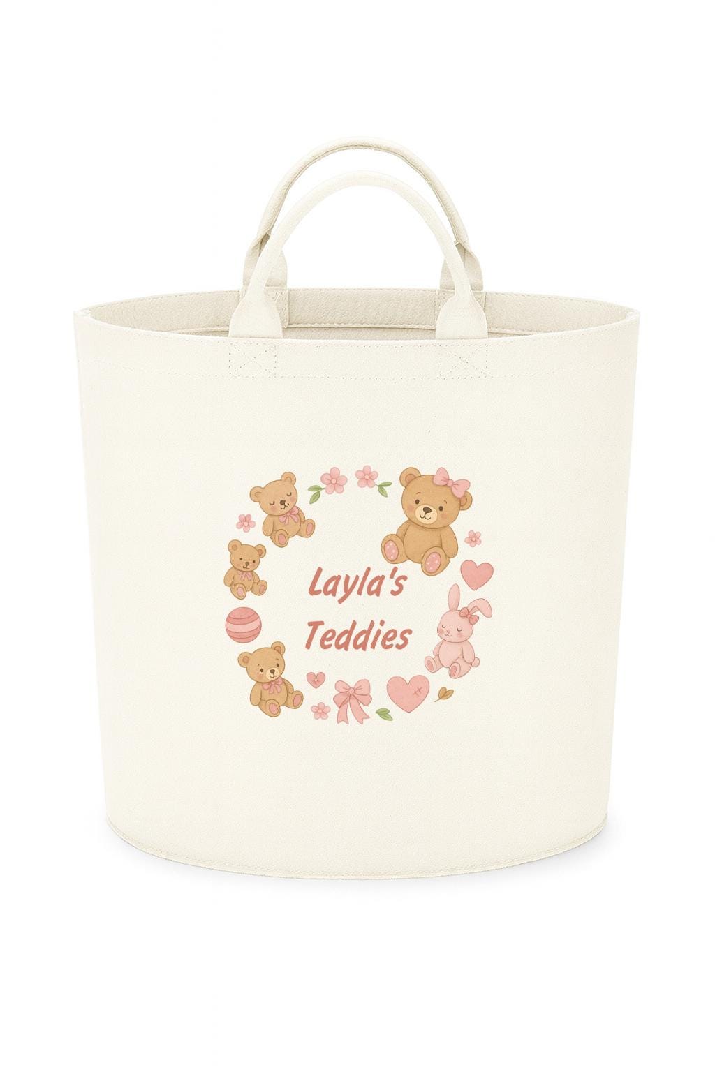 Personalised Teddy storage Felt Trug basket, perfect gifts girls kids gift fun animals storage basket trugs toy storage teddies