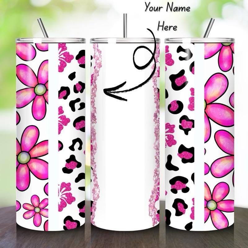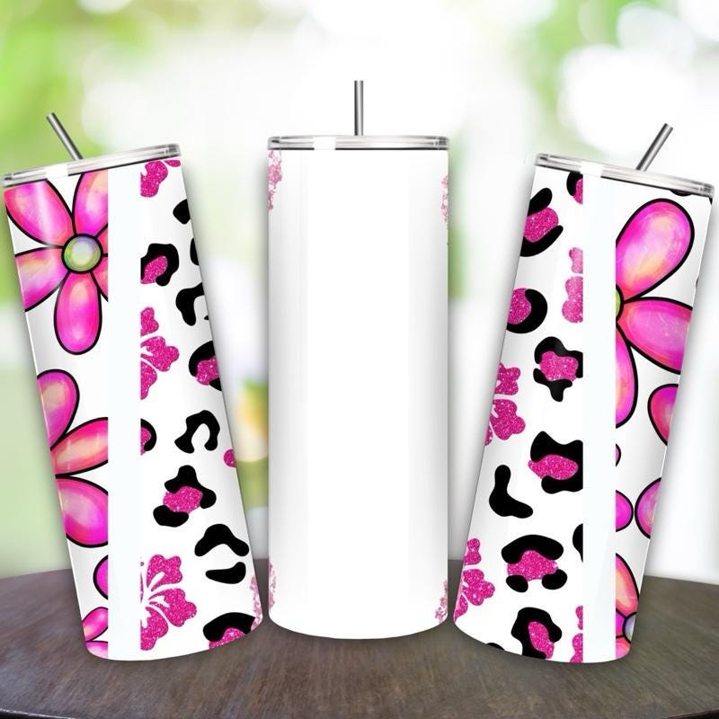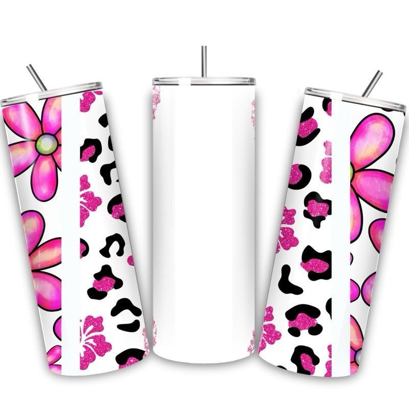 This 20oz tumbler features a floral leopard print style, ideal for staying