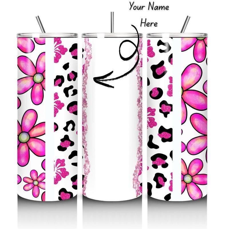 Personalised tumbler floral leopard print style 20oz - perfect for on-the-go hydration - vacuum flask - cup drinkware mug bottles water bott