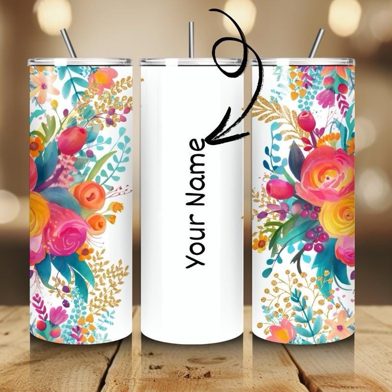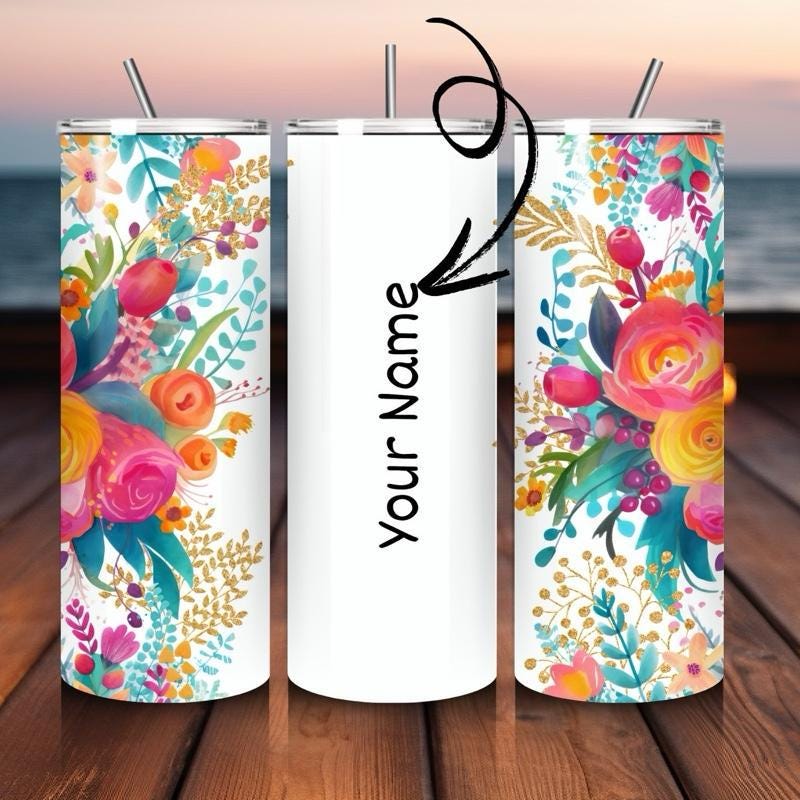 Personalised tumbler floral style 20oz - perfect for on-the-go hydration - vacuum flask - cup drinkware mug bottles water bottles bottled po