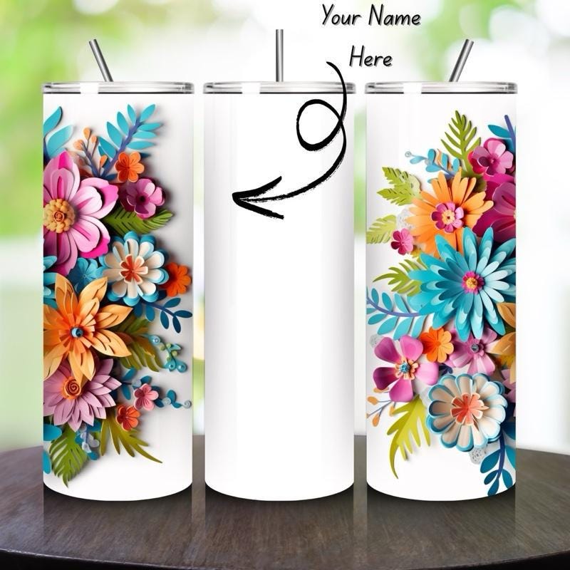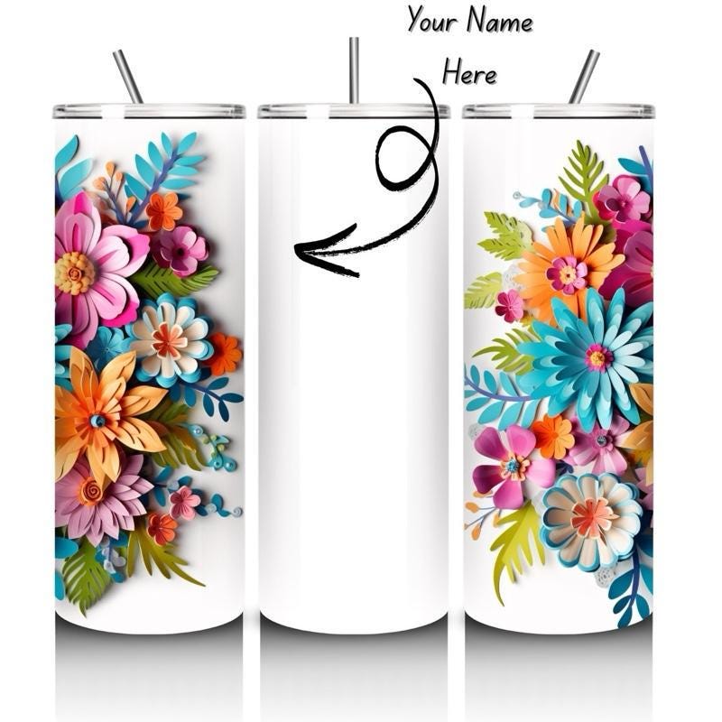 Personalised tumbler floral style 20oz - perfect for on-the-go hydration - vacuum flask - cup drinkware mug bottles water bottles bottled po