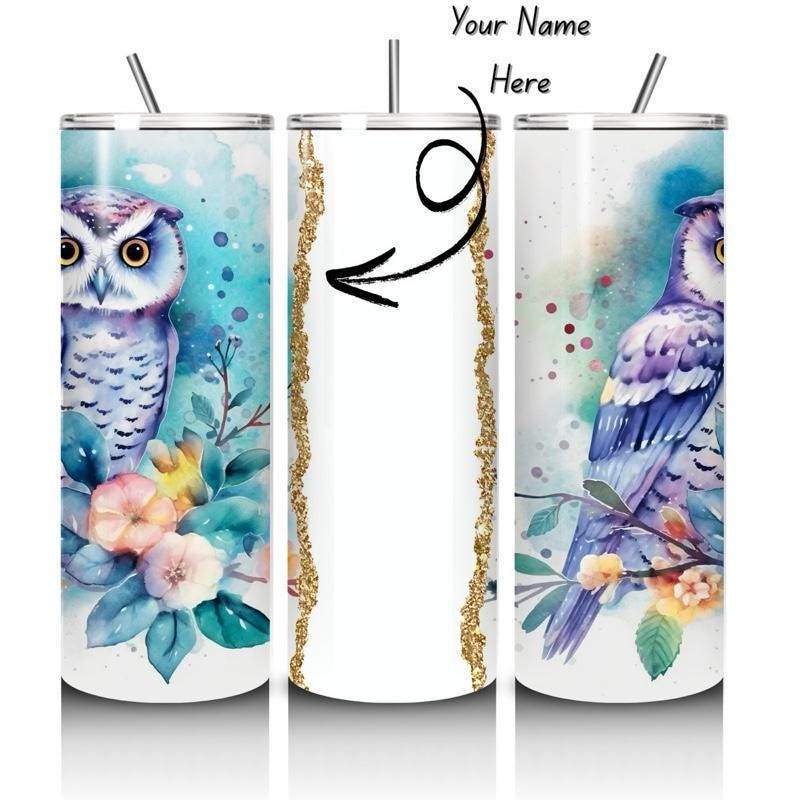 Personalised tumbler gold owl style 20oz - perfect for on-the-go hydration - vacuum flask - cup drinkware mug bottles water bottles bottled