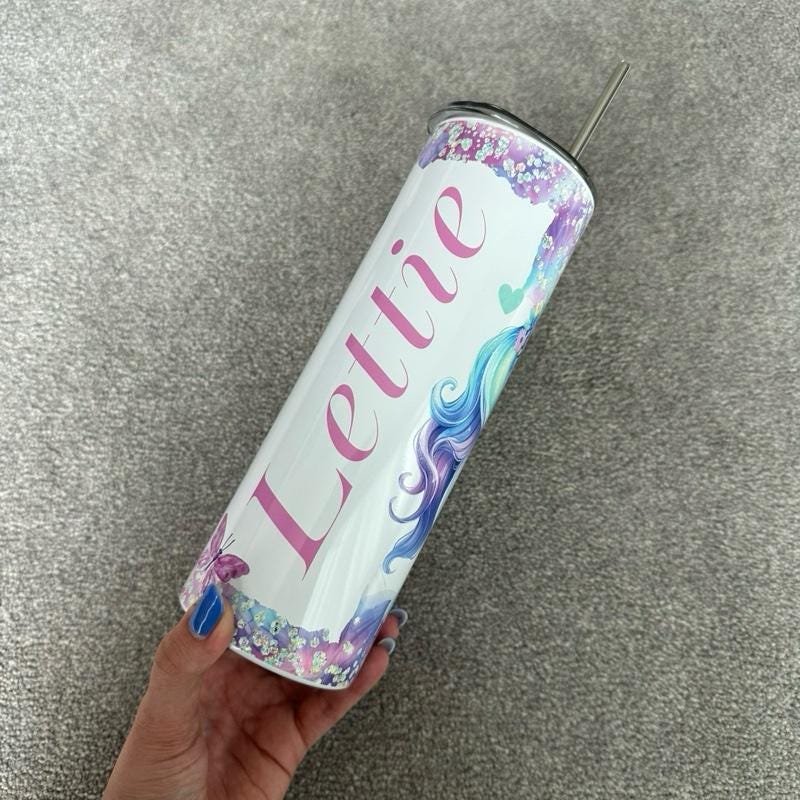 Personalised unicorn 20oz tumbler - cute gifts kids gift add name onto tumbler drinkware flasks mug water bottles bottled portable insulated