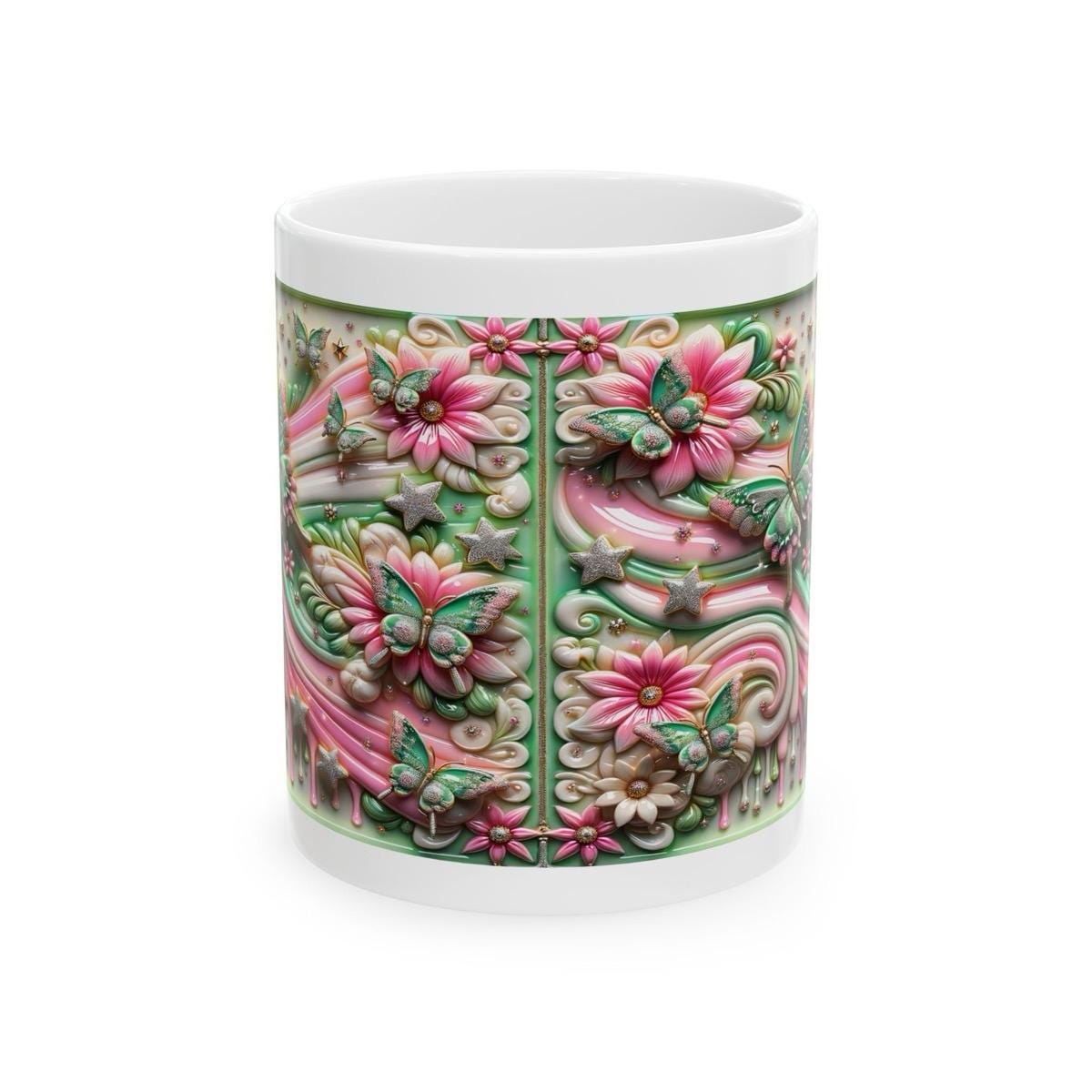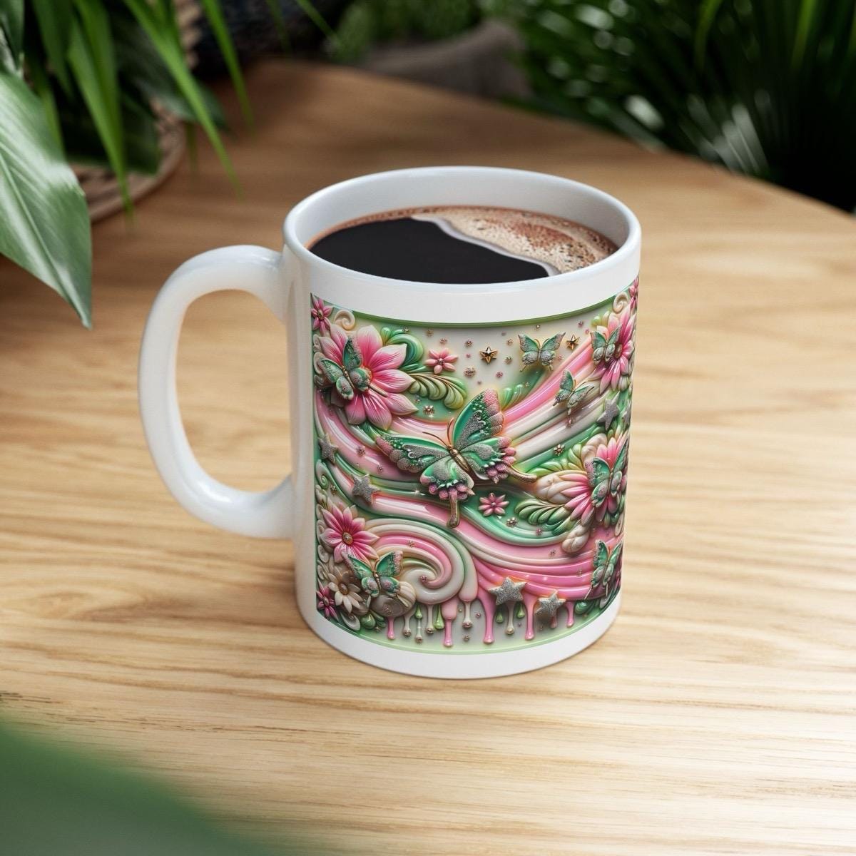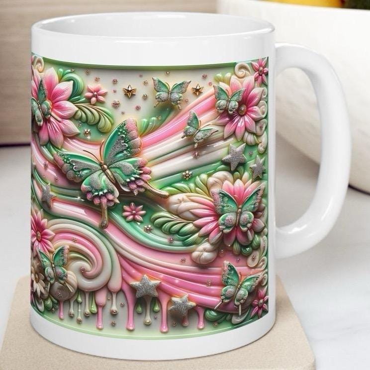 Introducing the Pink Butterfly Flower 3D Mug, a perfect addition to your drinkware collection. This mug is designed to add a touch of elegance and beauty to your morning routine. The 3D design of the mug features a pink butterfly and a flower, making it visually appealing and unique.