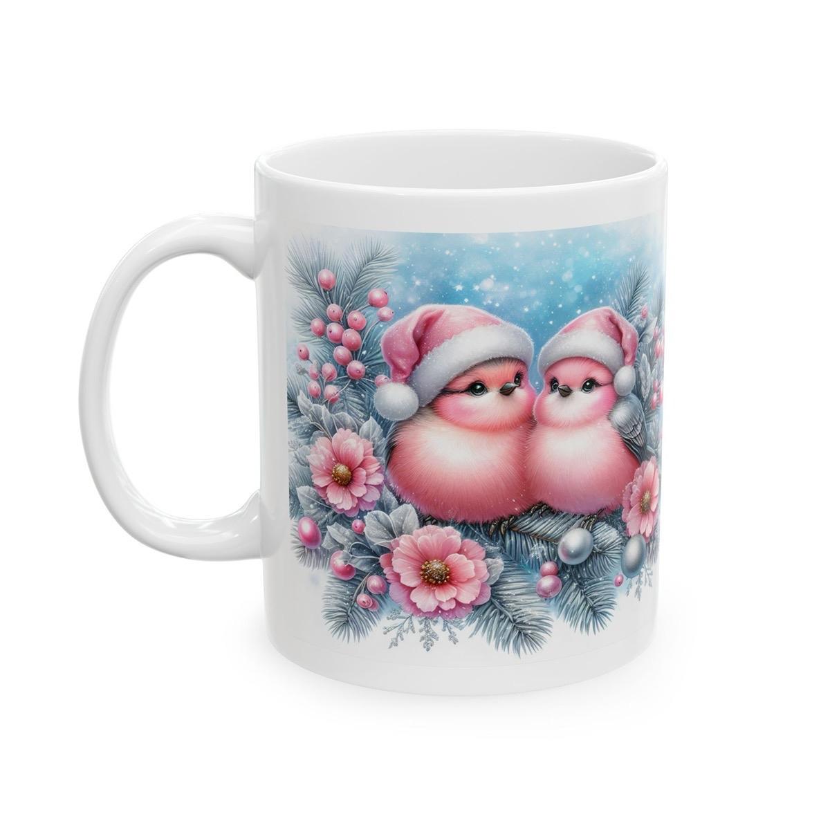 Introducing the Pink Christmas Birds Mug, a perfect addition to your holiday season collection. This mug is designed with a festive pink color and features a Christmas birds design that adds a touch of holiday cheer to your morning routine.