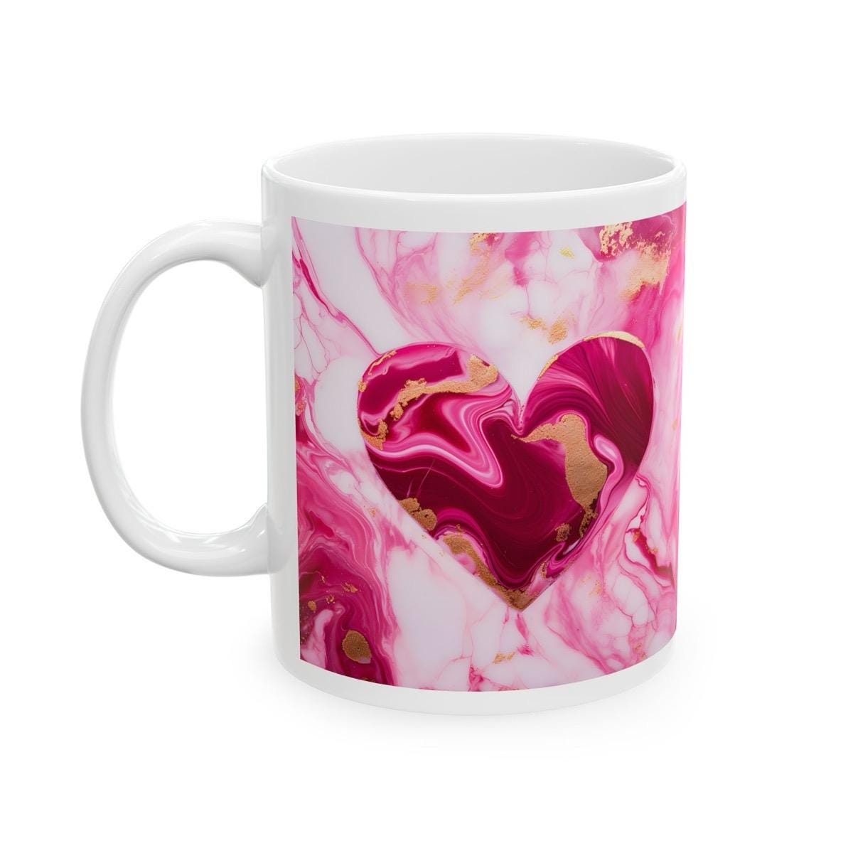 The mug is made of durable material, ensuring that it can withstand daily use. The heart style design adds a romantic and festive touch to the mug, making it a great gift for Valentine's Day and Christmas. The pink gold color combination adds a pop of color to the mug, making it visually appealing. The unique marble design adds a touch of elegance to the mug, making it stand out from other mugs.