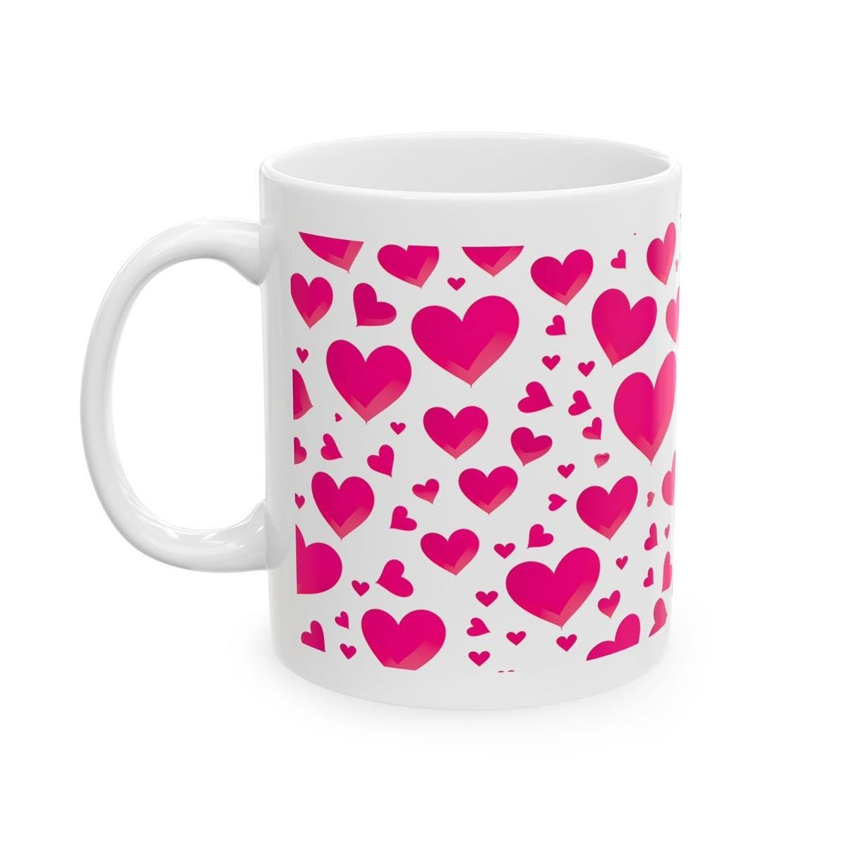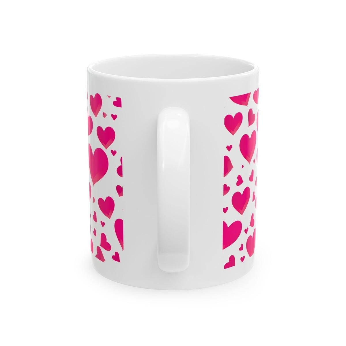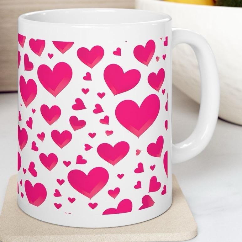 Pink love hearts mug - cute gift for xmas christmas valentines - perfect for drinks - drinkware mugs gifts boyfriend girlfriend wife husband