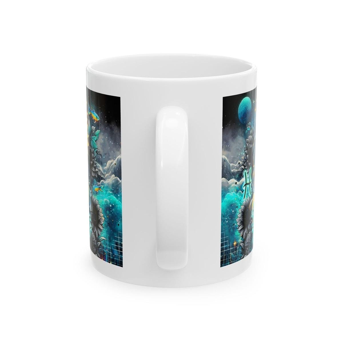 This Pisces Star Sign Astrology Mug is the perfect gift for coffee and tea lovers. The design features the Pisces zodiac sign, making it a unique and personalized gift for those born under the Pisces sign. The mug is made of ceramic material, which is durable and can withstand high temperatures, making it suitable for hot beverages like coffee and tea.