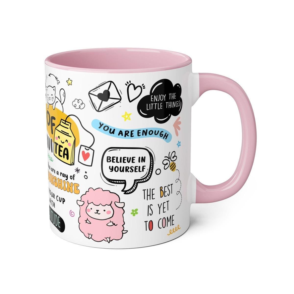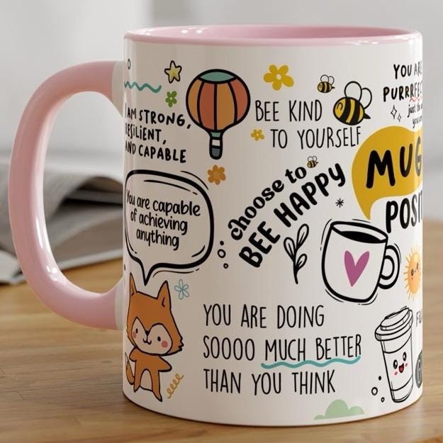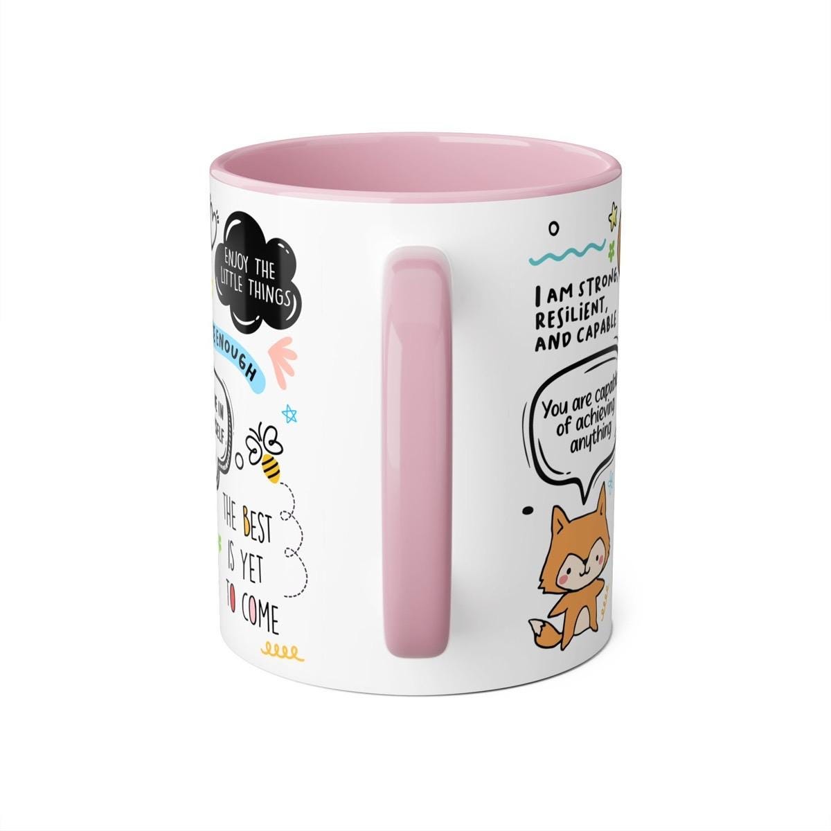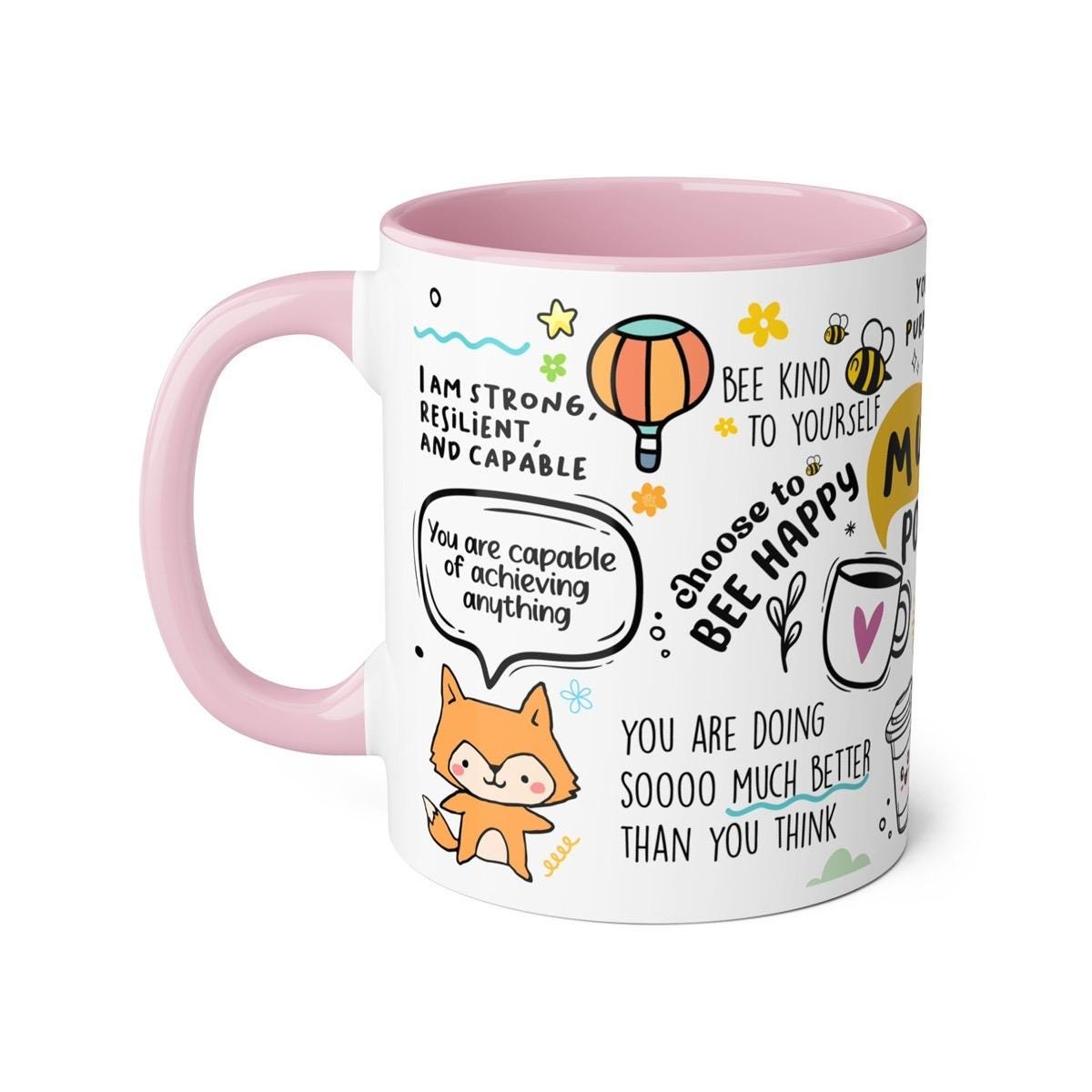 Overall, this Positive Vibes Affirmations Mental Health Mug is a great way to start your day on the right foot. With its positive affirmations and fun pink interior and handle, it's sure to become your go-to mug for all your daily needs.