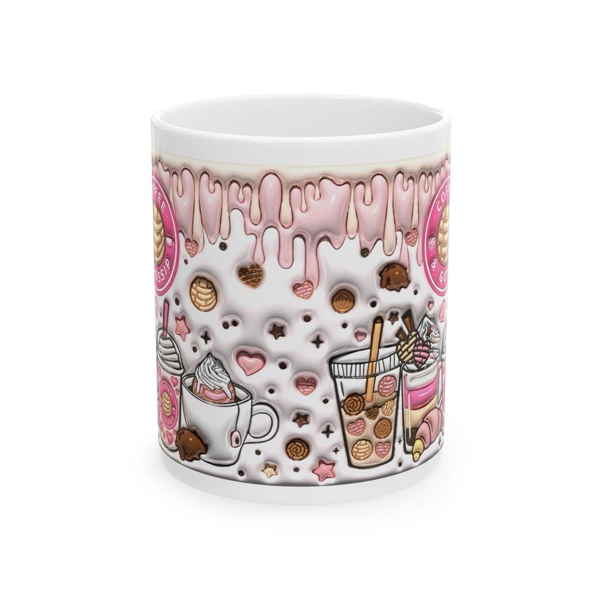 Pretty 3d coffee and gossip girly pink mug - secret santa christmas stocking filler - drinkware tumbler reuse cup washable reusable ceramic