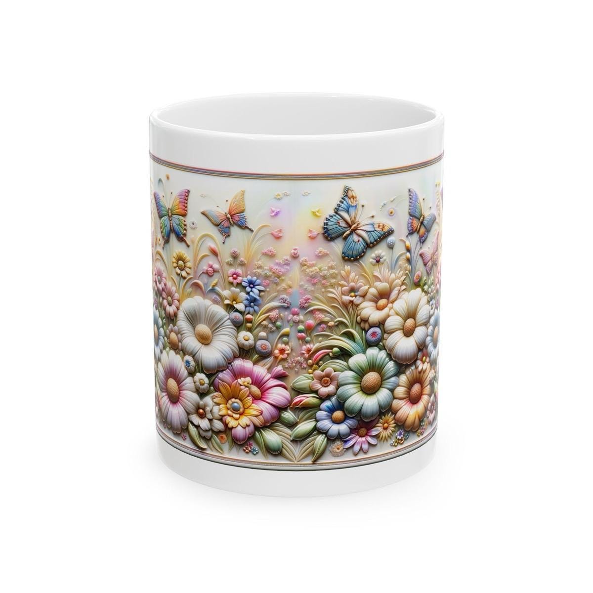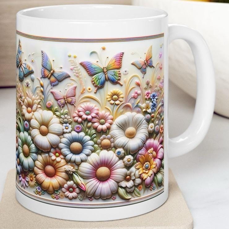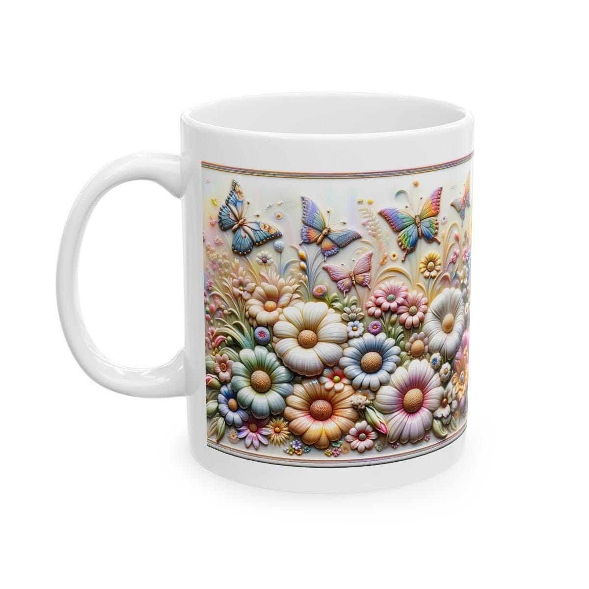 Pretty flowers butterfly 3d mug - perfect for your morning drinks - tumblers, drinkware reusable washable cup coffee reuse ceramic xmas