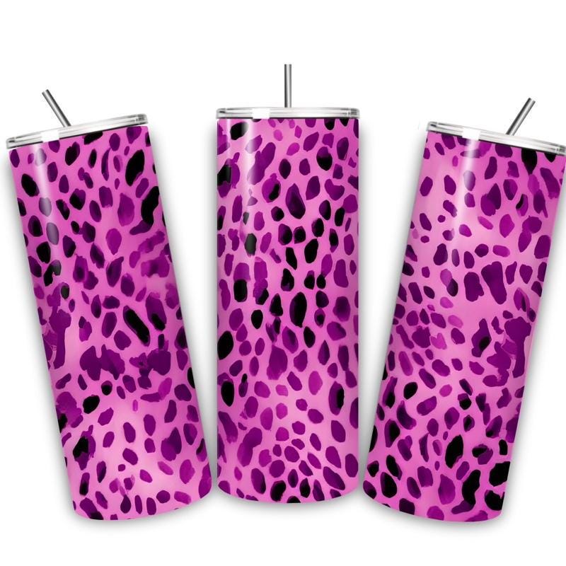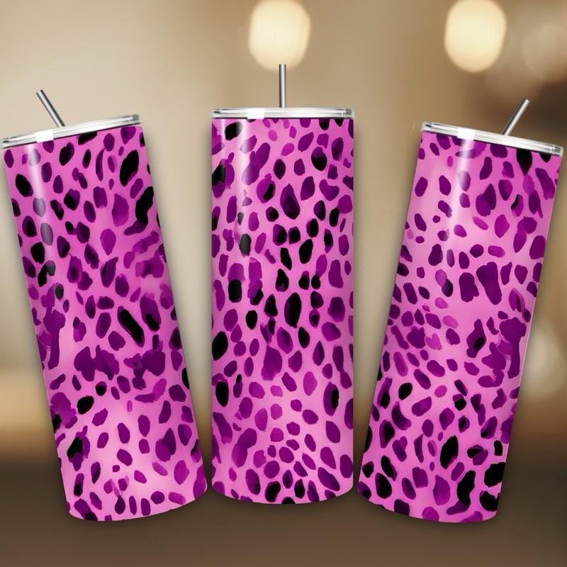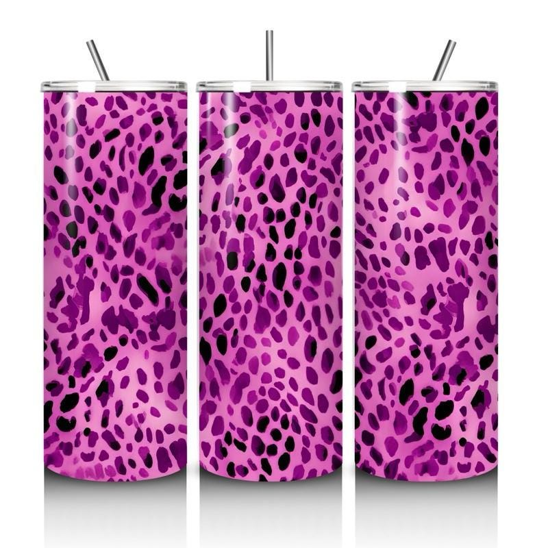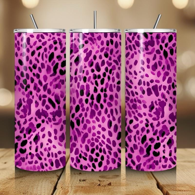 ONE TUMBLER - PHOTOS SHOW A 360 view of the tumbler π So you can see all sides on the tumbler. Only ONE tumbler will arrive if you order one item.β’ Bold Purple Leopard Print: This tumbler boasts a striking purple leopard